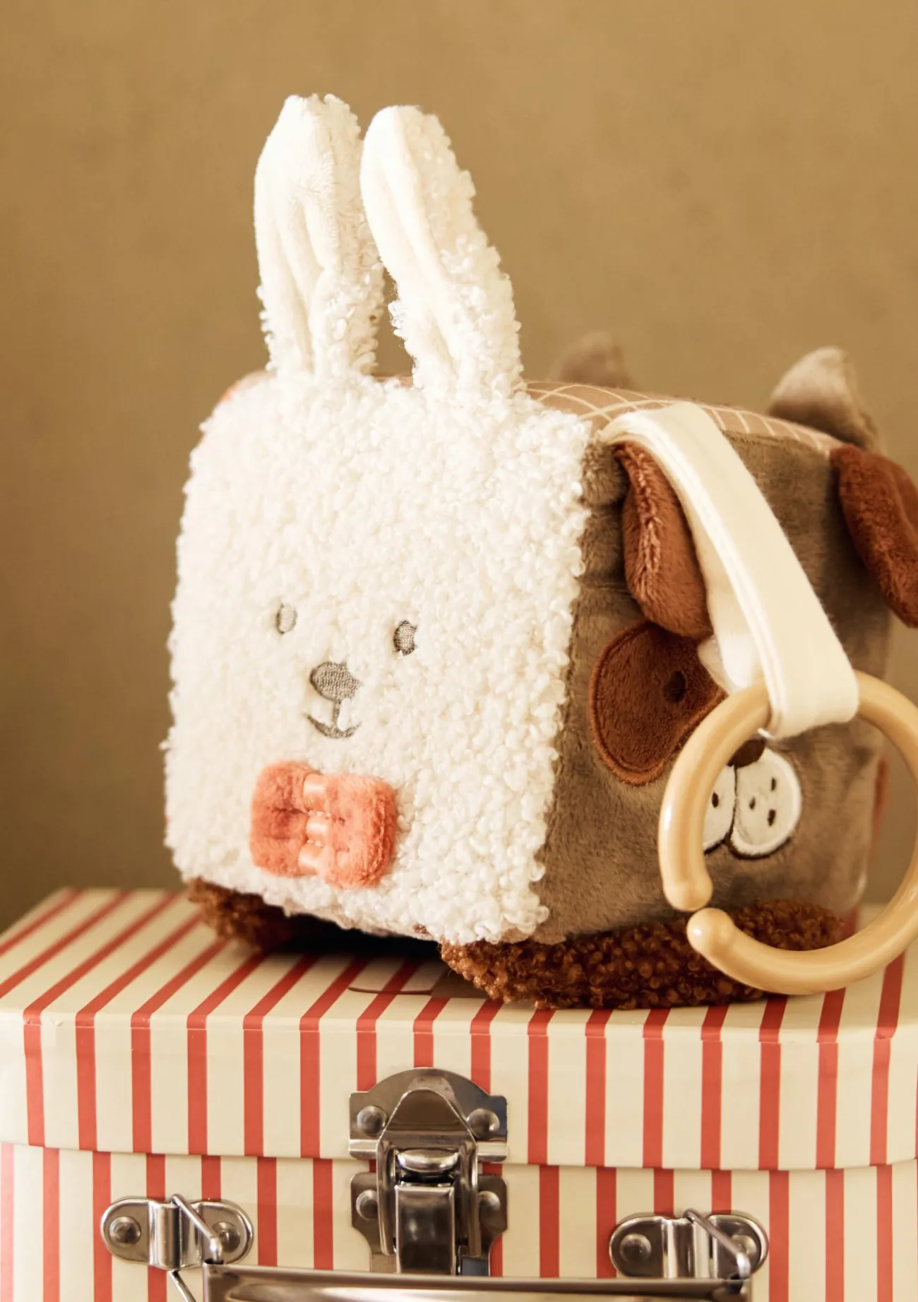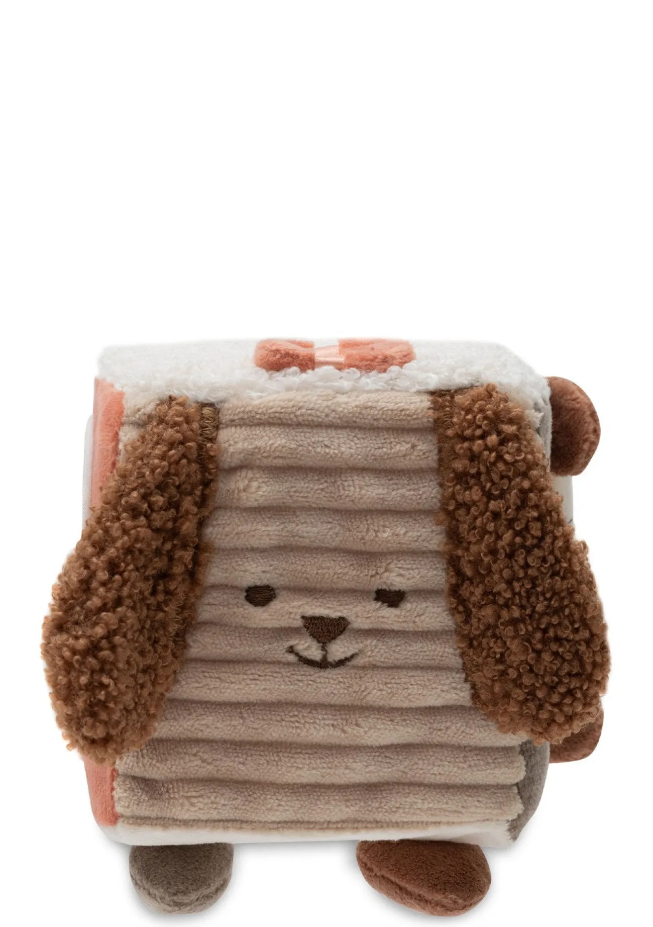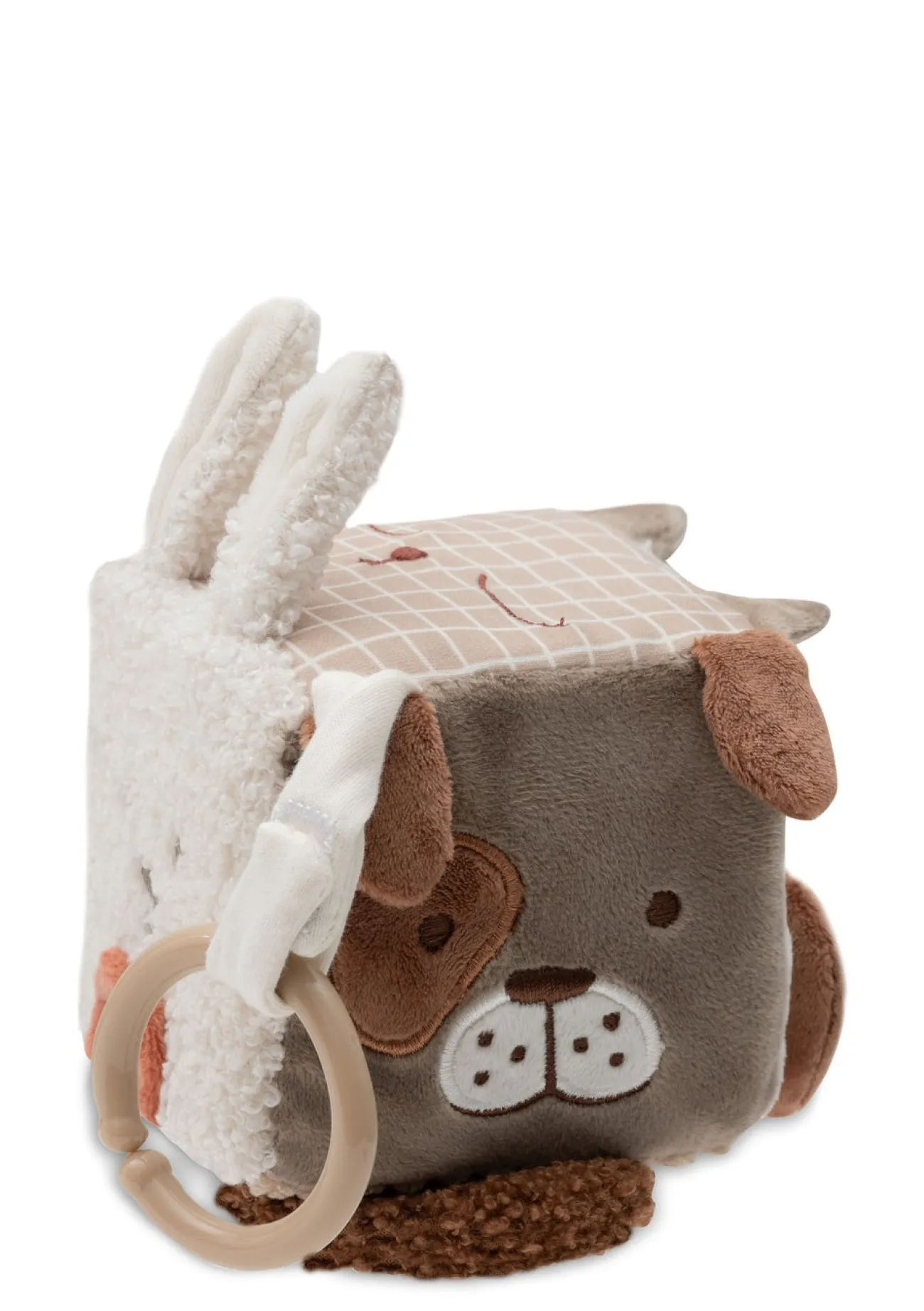Versteckte Knisterelemente, ein kleiner Spiegel, Schlaufen zum Greifen und süße Tierfreunde machen den Würfel zu einem abwechslungsreichen Spielzeug, das Babys Neugier weckt und lange begeistert – ob zuhause, unterwegs oder als liebevolle Geschenkidee zur Geburt.