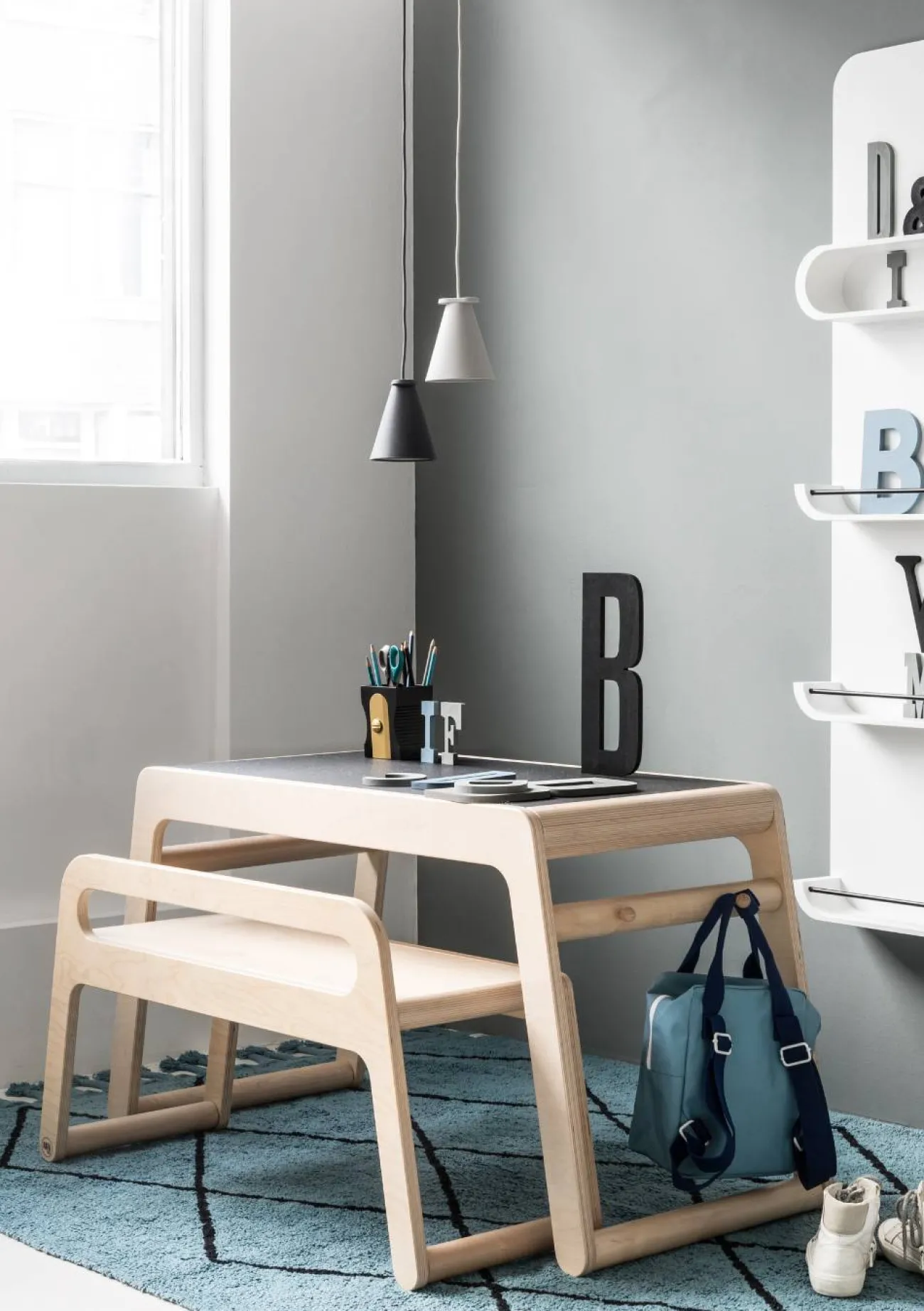 Der B Tisch von RAFA-KIDS, dem kreativen Label für zeitlose Kindermöbel, präsentiert sich in minimalistischem Design und begeistert mit raffinierten Details: Zwei versteckte Schubladen an den Seiten bieten Platz für Stifte, Malpapier und Co. und schließen so sanft, dass kleine Finger bestens vor dem Einklemmen geschützt werden. Die Tischplatte ist mit hochwertigem Laminat in Weiß und Schwarz versehen und kann für einen abwechslungsreichen Look nach Belieben gewendet werden. An den hölzernen Haken an den Seiten des Tisches kann ein kleiner Rucksack oder eine Tasche bestens aufgehängt werden. Optional kommt der neue Tisch fürs Kinderzimmer gleich mit der passenden Sitzbank – wahlweise mit oder ohne Rückenlehne (bitte entsprechende Variante auswählen). Die robuste Kinderbank ist nicht nur eine tolle Ergänzung zum Tisch, sondern macht auch als stilvoller Beistelltisch für die Betten des Designlabels eine ausgesprochen gute Figur. Vielseitig, funktional und langlebig – eben typisch Rafa-kids!