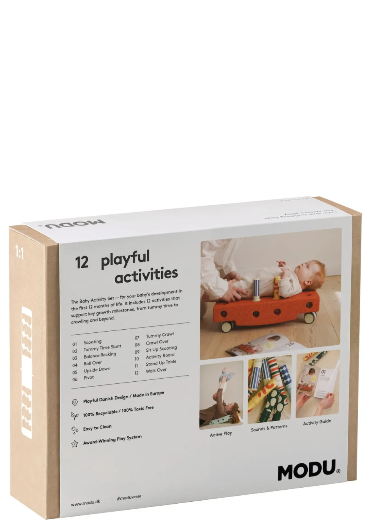 Spielen und Entdecken! Das MODU Activity-Set für Babys hält viele aufregende Aktivitäten für die ersten zwölf Monate bereit.