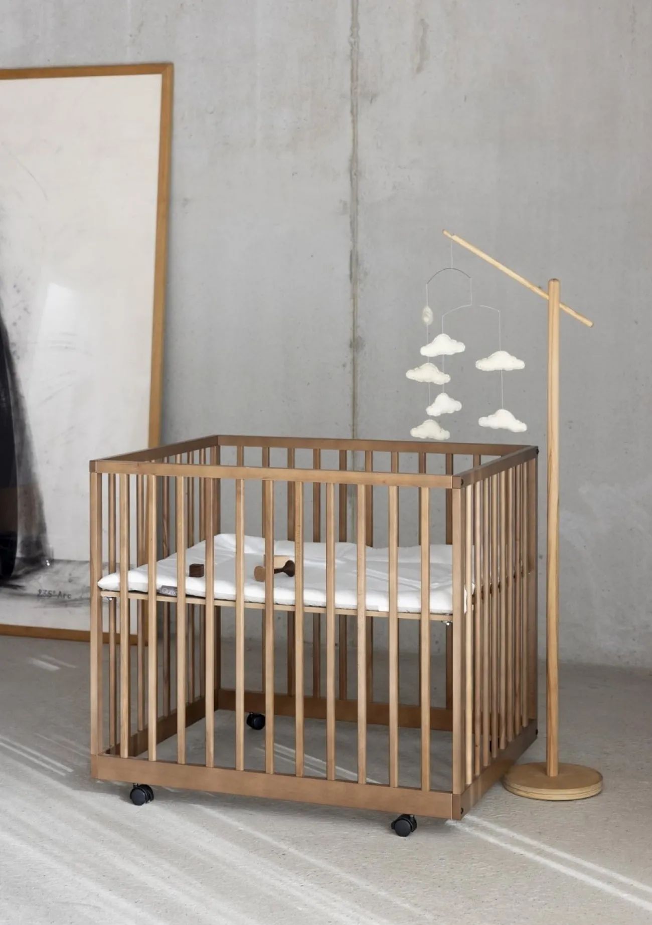 Schlicht & funktional: der QUAX Holzständer für Mobiles, Vorhänge und Betthimmel