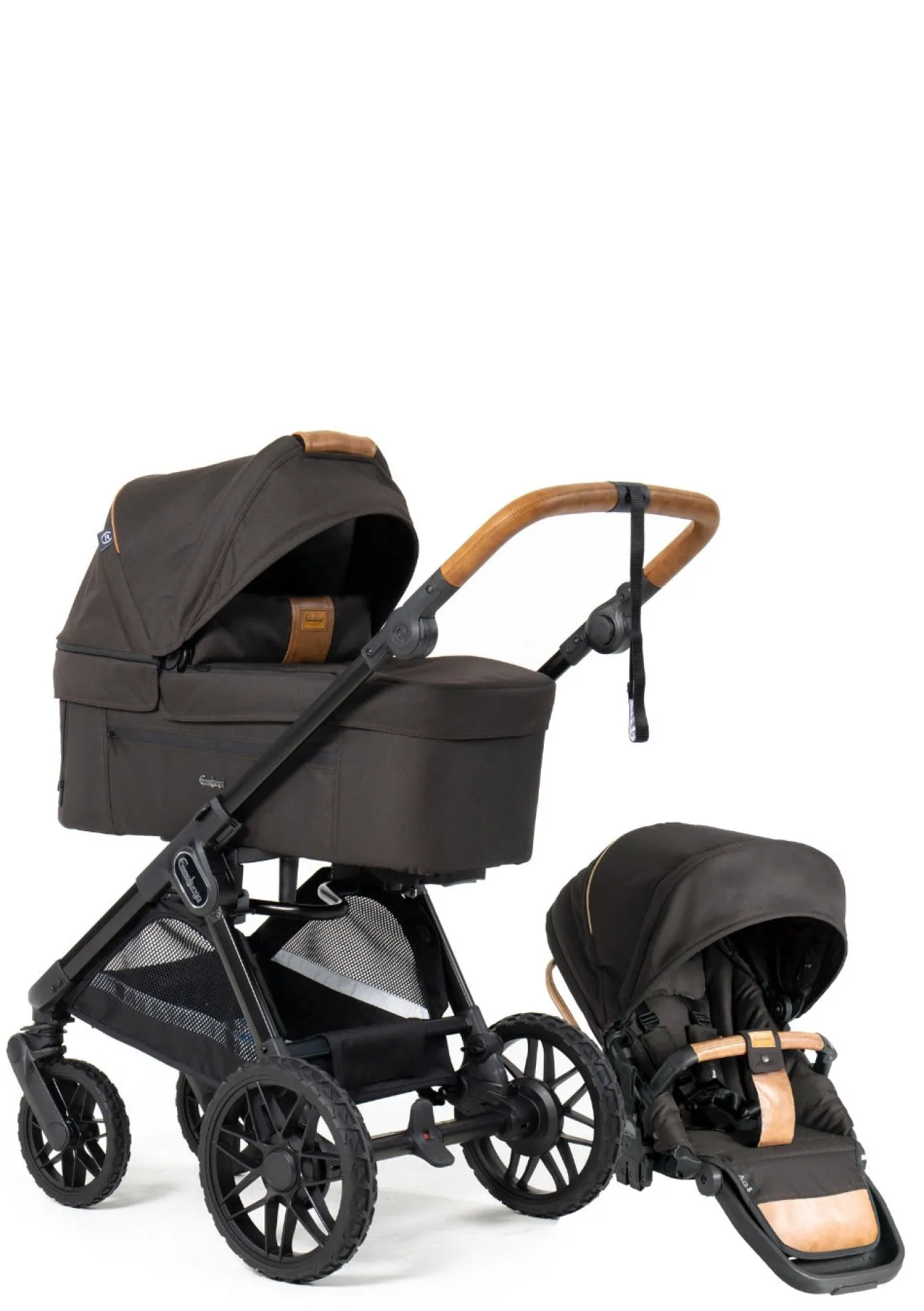 - robust-gestalteter Kinderwagen im Outdoor-Look mit edlen Leatherette-Akzenten