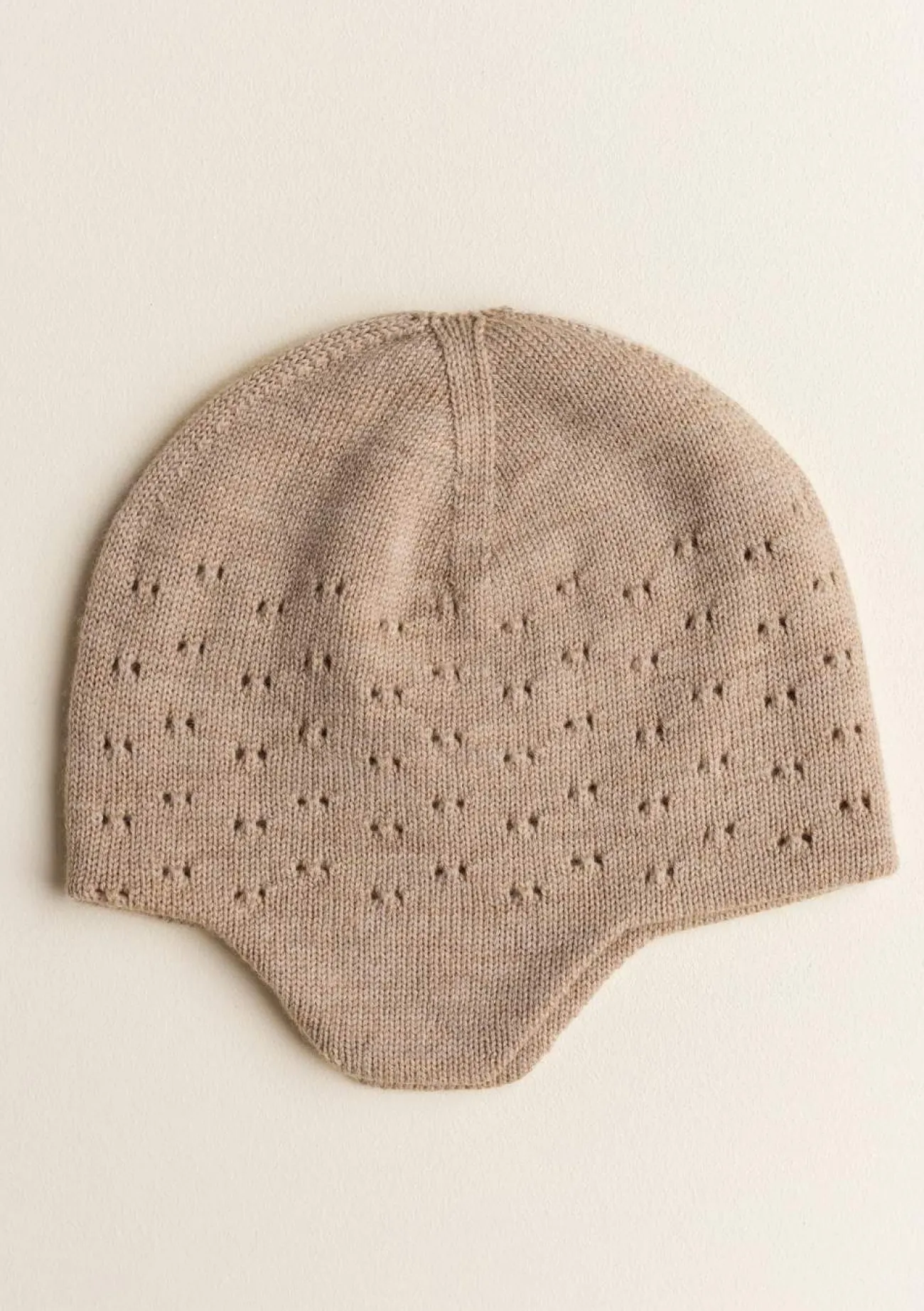 - weiche Strickmütze mit feiner Struktur und Ohrenklappen