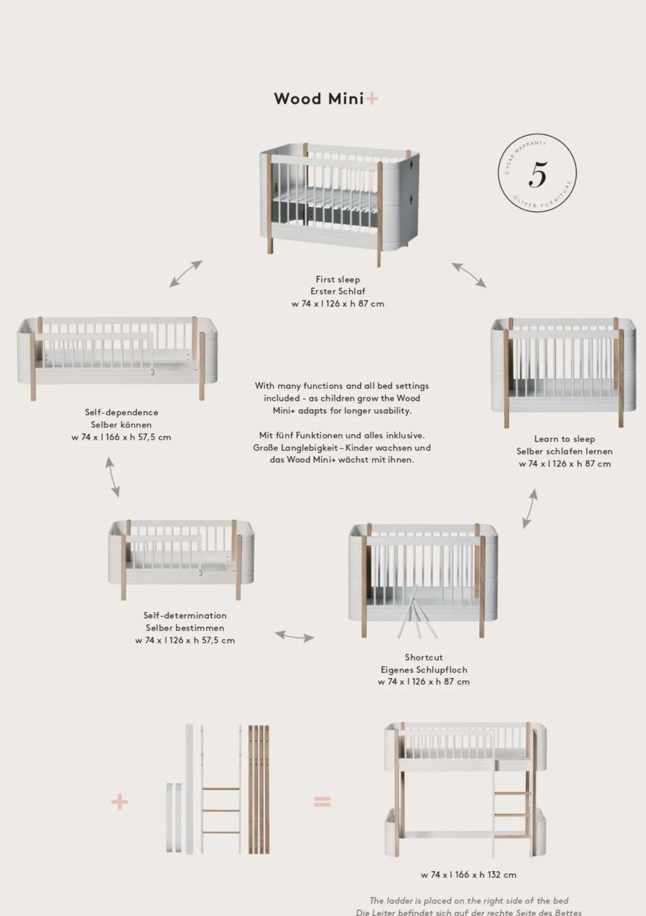Nähere Informationen zu den verschiedenen Umbaumöglichkeiten der Oliver Furniture Wood Mini+ Serie findest du in dieser .