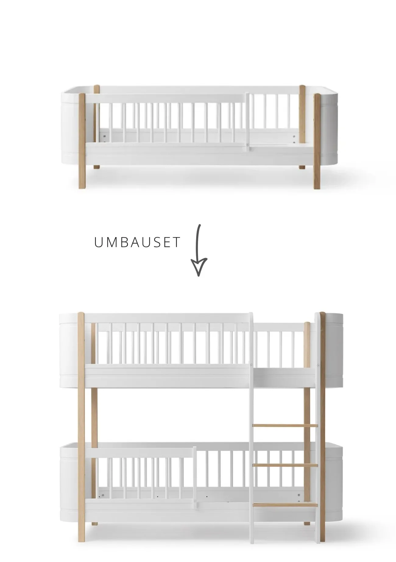 Ihr habt bereits das Juniorbett aus der Mini+ Serie und wollt nun eine zusätzliche Schlafmöglichkeit schaffen? Dann seid ihr mit dieser Ergänzung gut beraten. Ob für Geschwister oder spontane Übernachtungsgäste – das halbhohe Etagenbett, das mit diesem umfangreichen Umbauset entsteht, bietet gleich doppelt Platz und bleibt dabei ganz im zeitlos schönen Oliver-Furniture-Design.