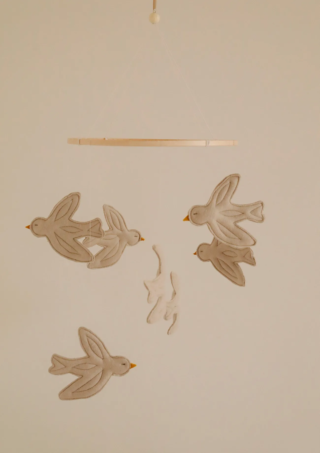 Dieses schöne Mobile besteht aus sieben Baumwoll-Vögeln, die deinem Kind jede Menge Freude bereiten werden! Sie sind perfekt, um beobachtet zu werden und ein Gefühl für räumliches Sehen zu entwickeln!