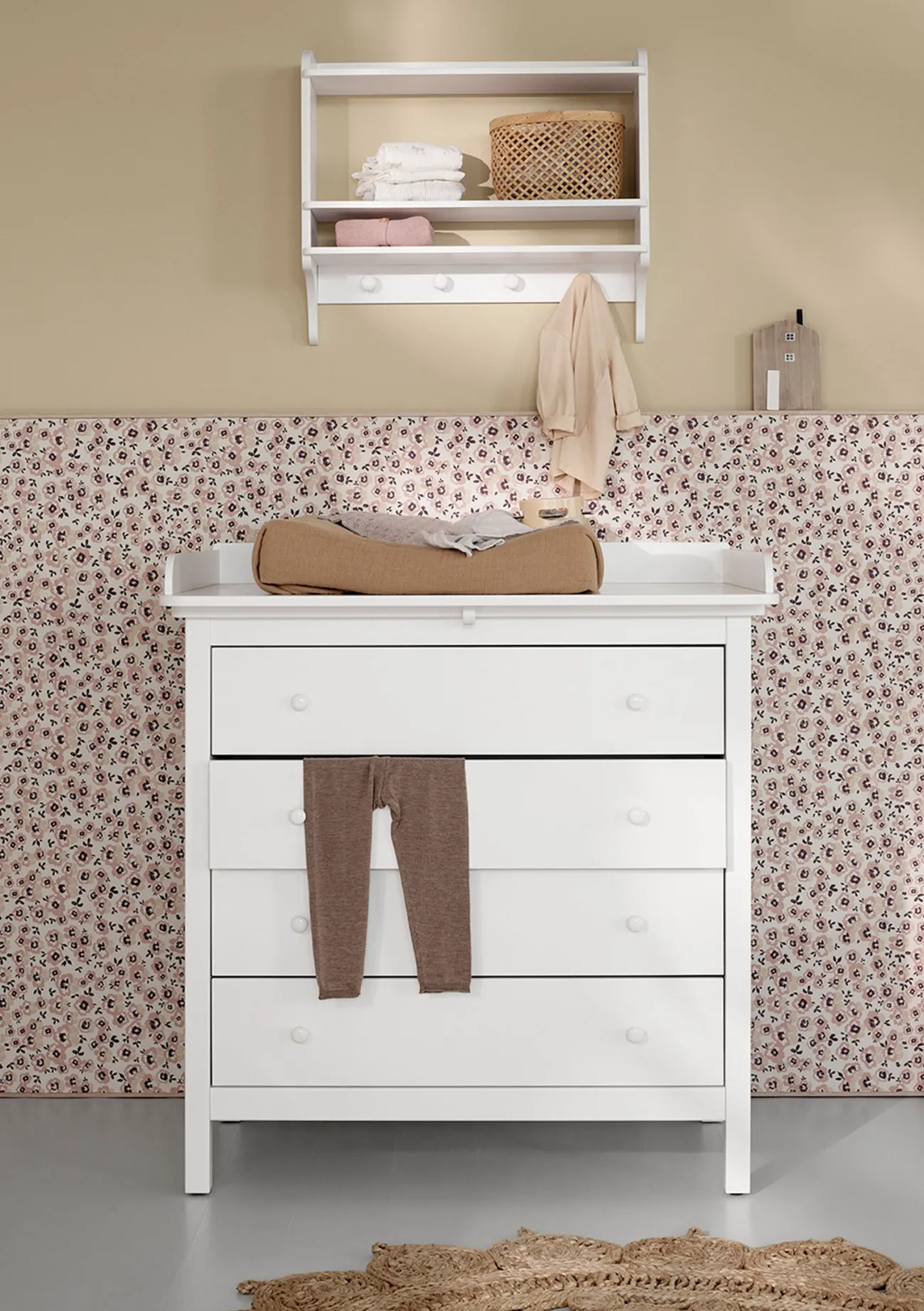 - sichere Umgebung durch die große Wickelplatte mit runden Kanten, die die gesamte Oberfläche der Kommode bedeckt