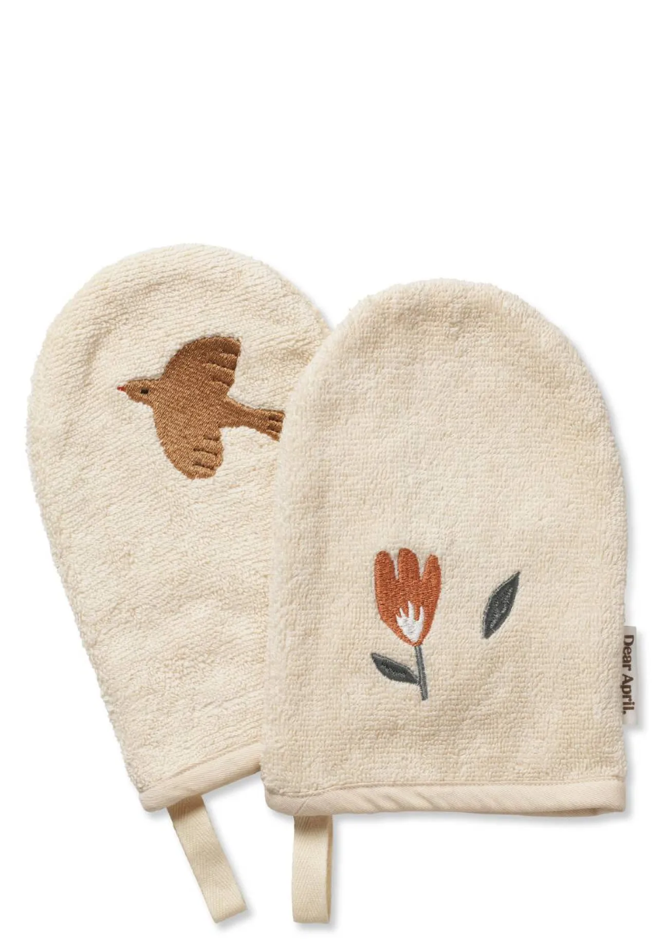 Im Doppelpack kommen diese hübschen Badehandschuhe aus dem Hause DEAR APRIL und verzaubern in drei anmutigen Designs mit stilvollen Stickereien. Gefertigt aus wunderbar weichem Frottee aus reiner Bio-Baumwolle sind sie besonders sanft zur empfindlichen Kinderhaut. Ein nützliches Detail ist die Schlaufe zum Aufhängen. Perfekt für den täglichen Einsatz!