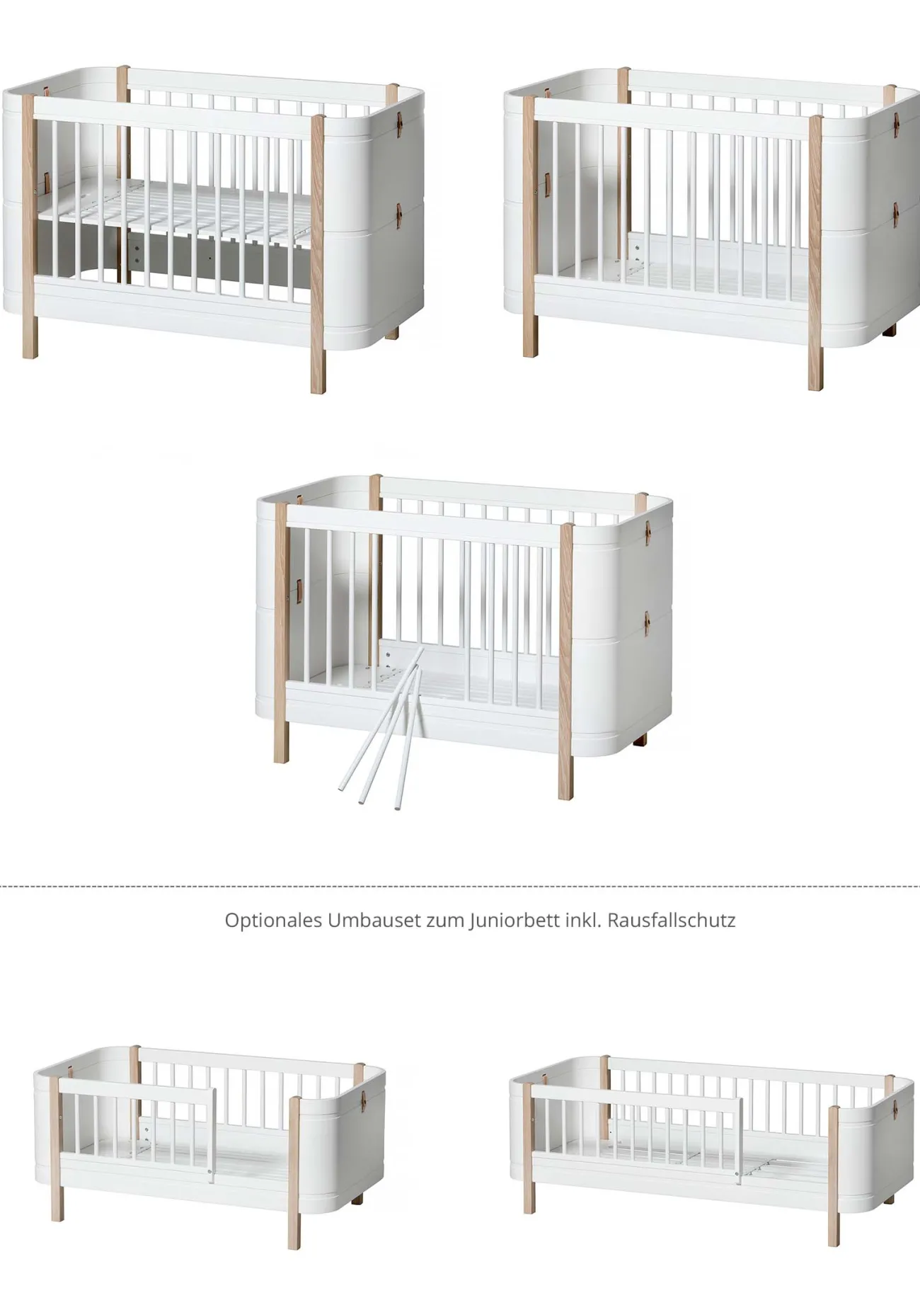 Jedes Wood Mini+ Bett kann einzeln gekauft werden und lässt sich bei Bedarf mit dem passenden Umbauset in ein anderes Modell verwandeln. Entdecke zeitlos schöne Möbel – entworfen nach dem Prinzip der ästhetischen Nachhaltigkeit vom dänischen Label Oliver Furniture. In unseren Baby Concept Stores beraten wir dich gerne persönlich!