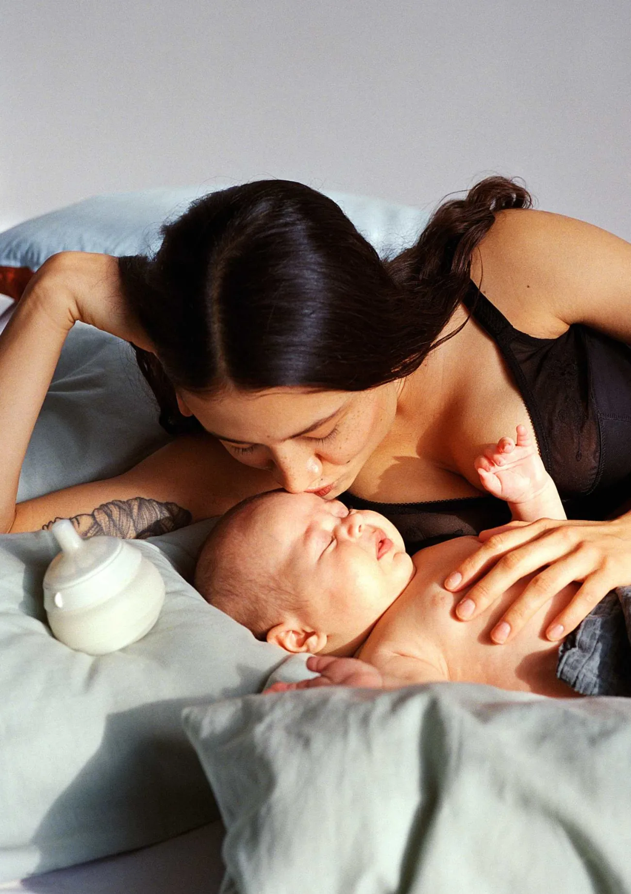 - unterstützt alle stillnahen Positionen: im Bett oder im Arm liegend, Bauch an Bauch etc.