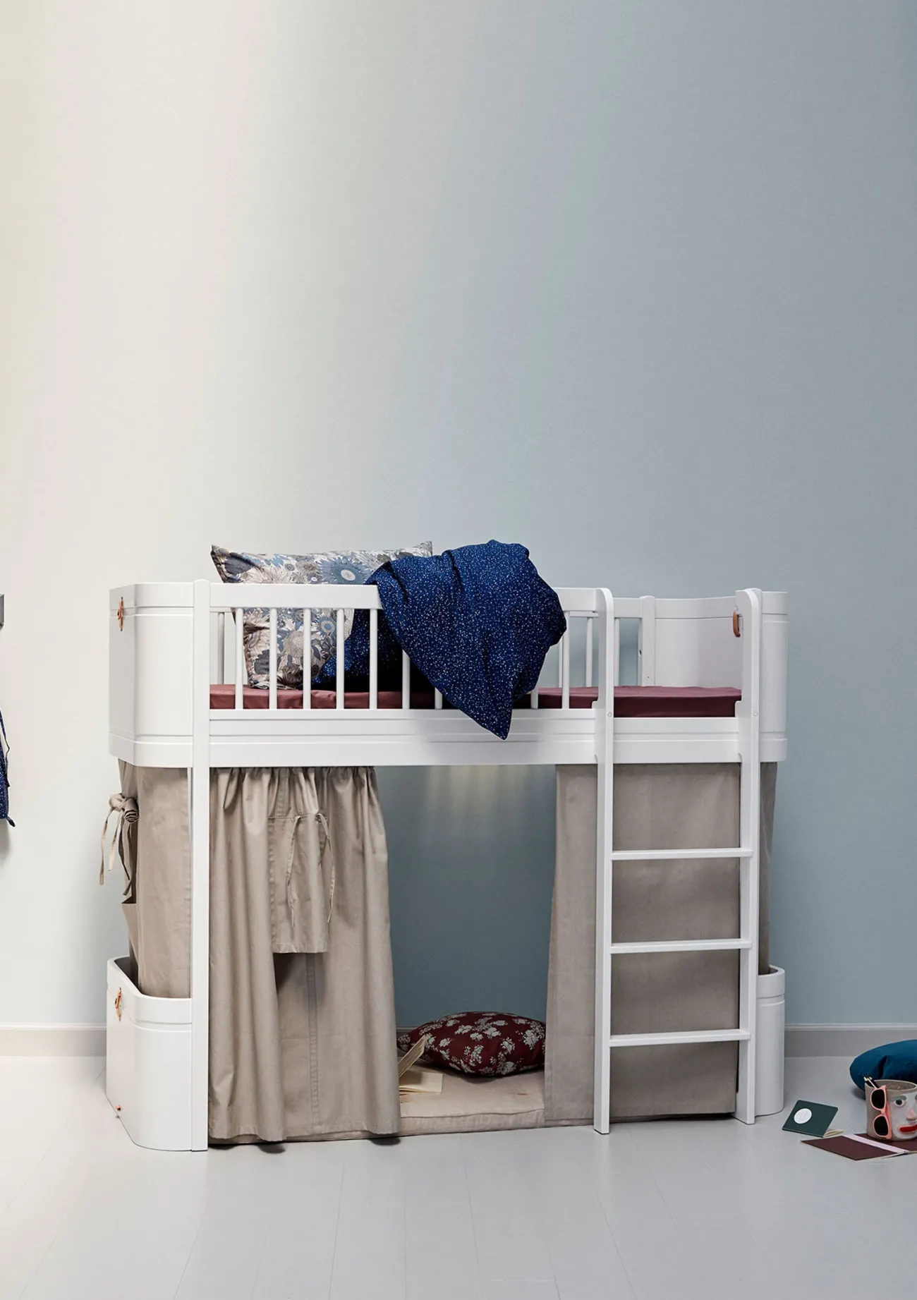 Gemütlicher Rückzugsort zum Spielen, Lesen oder Träumen: das Wood Mini+ halbhohe Hochbett von OLIVER FURNITURE