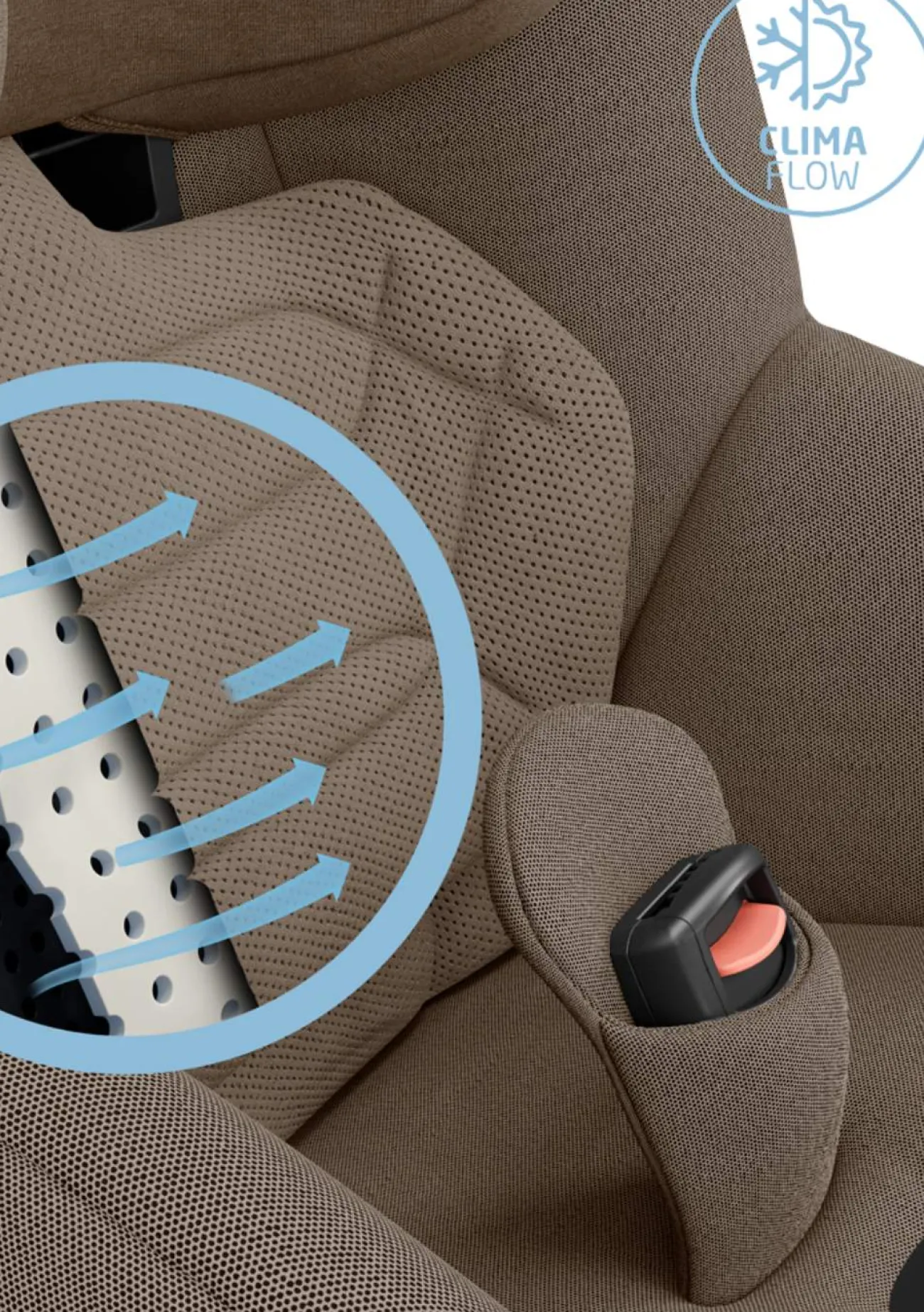- ClimaFlow-Temperaturregulierung: Clima Flow-Paneele, atmungsaktiver Schaumstoff und klimaregulierende Mesh-Stoffe sorgen für eine angenehme Luftzirkulation und höchstes Wohlbefinden unterwegs