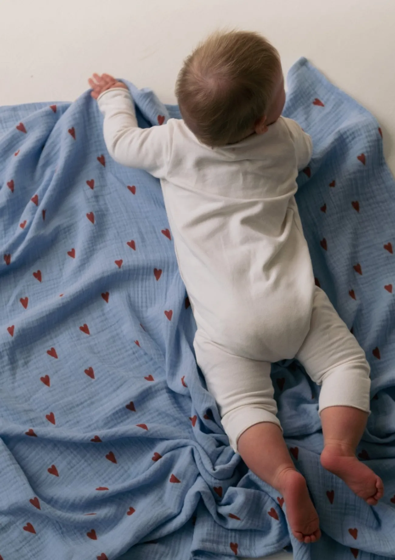 Sanft zur Haut, voller Liebe im Design: Ein echtes Lieblingsstück für den Babyalltag mit viel Platz zum Einkuscheln. Dieses großzügige Stofftuch von Studio Noos begeistert mit seinem verspielt-romantischen Herz-Print und verbindet zeitloses Design mit praktischer Größe. Gefertigt aus hochwertigem Musselin aus reiner Bio-Baumwolle, ist es besonders sanft zur empfindlichen Babyhaut, atmungsaktiv und angenehm leicht.