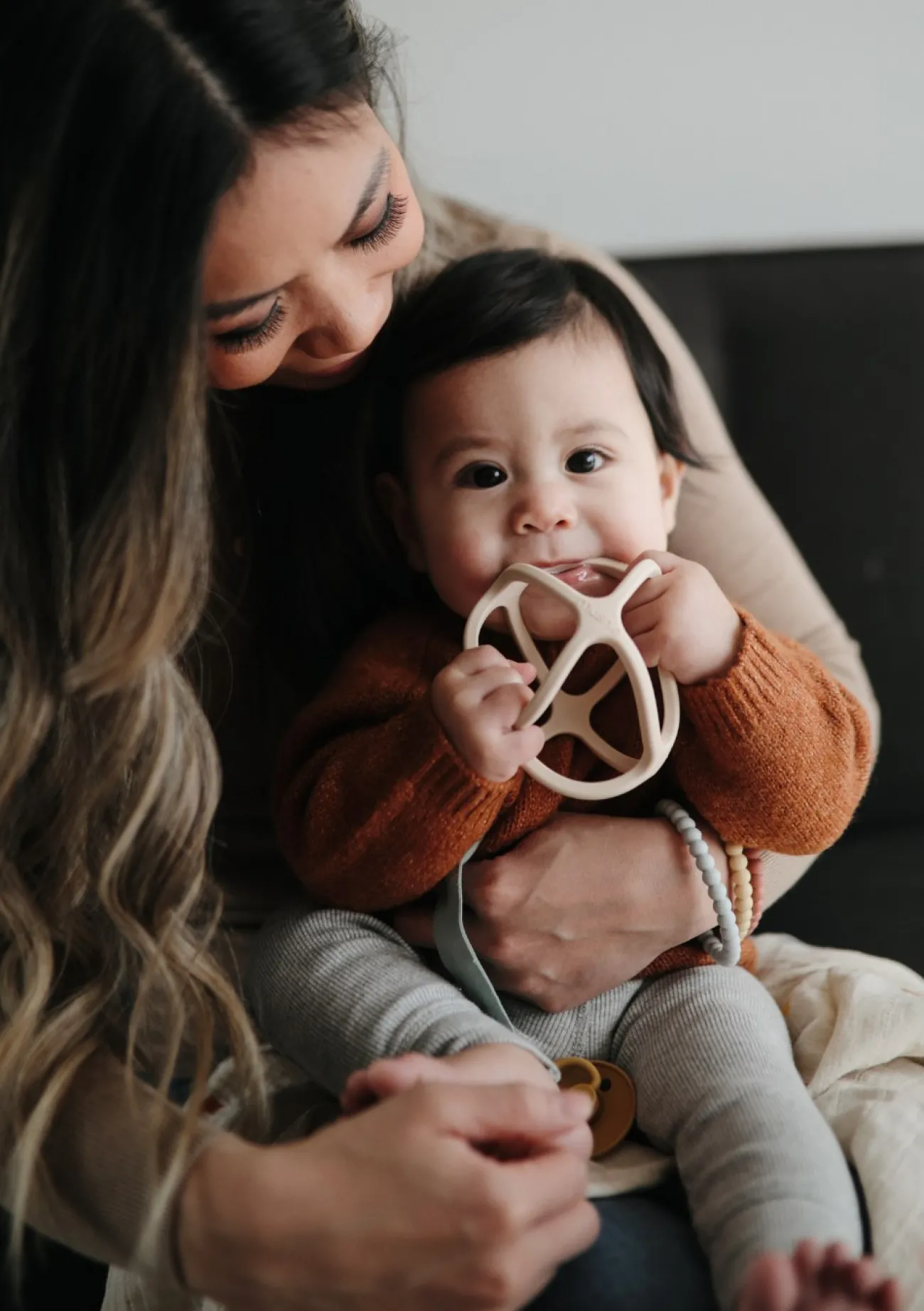 Überprüfen Sie den Beißring vor dem Gebrauch, um sicherzustellen, dass er sauber und unbeschädigt ist. Der Beißring besteht zu 100 % aus ungiftigem, lebensmittelechtem Silikon und ist absolut sicher zum Kauen. Das empfohlene Alter beträgt 3+ Monate.