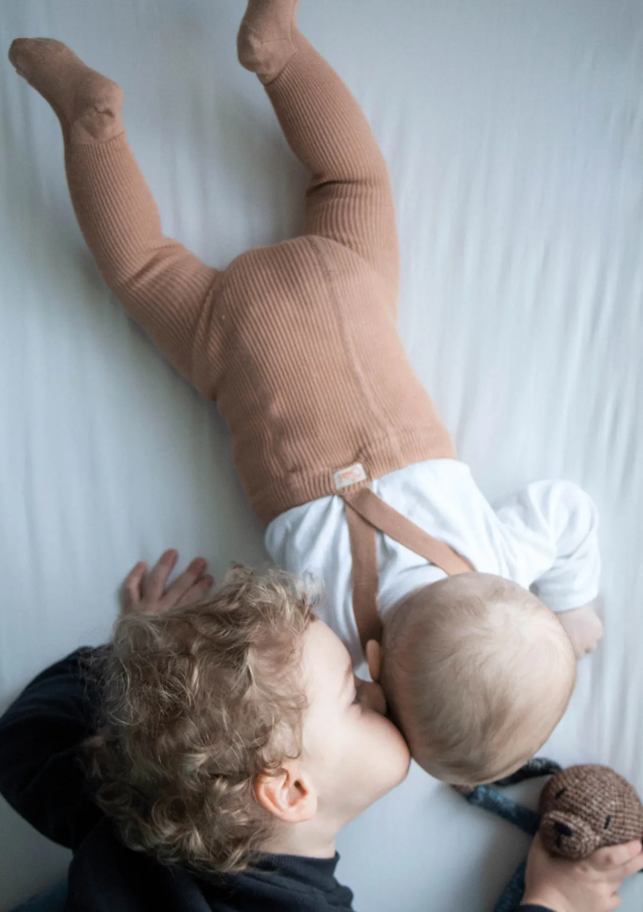 Es ist wichtig, dass dein Kind die Strumpfhose mit Hosenträgern immer richtig trägt (wie auf den Bildern gezeigt), d.h. mit einem Hosenträger auf der linken Schulter und dem anderen Hosenträger auf der rechten Schulter, um Abschürfungen zu vermeiden. Die Hosenträger helfen den kleinen Abenteurern, sich beim Spielen und Erkunden der Welt frei zu bewegen und sollten immer in der richtigen Position getragen werden. Dies ist kein Schlafanzug. Denk daran, dein Kind nicht unbeaufsichtigt zu lassen, wenn es eine Strumpfhose mit Hosenträgern trägt.