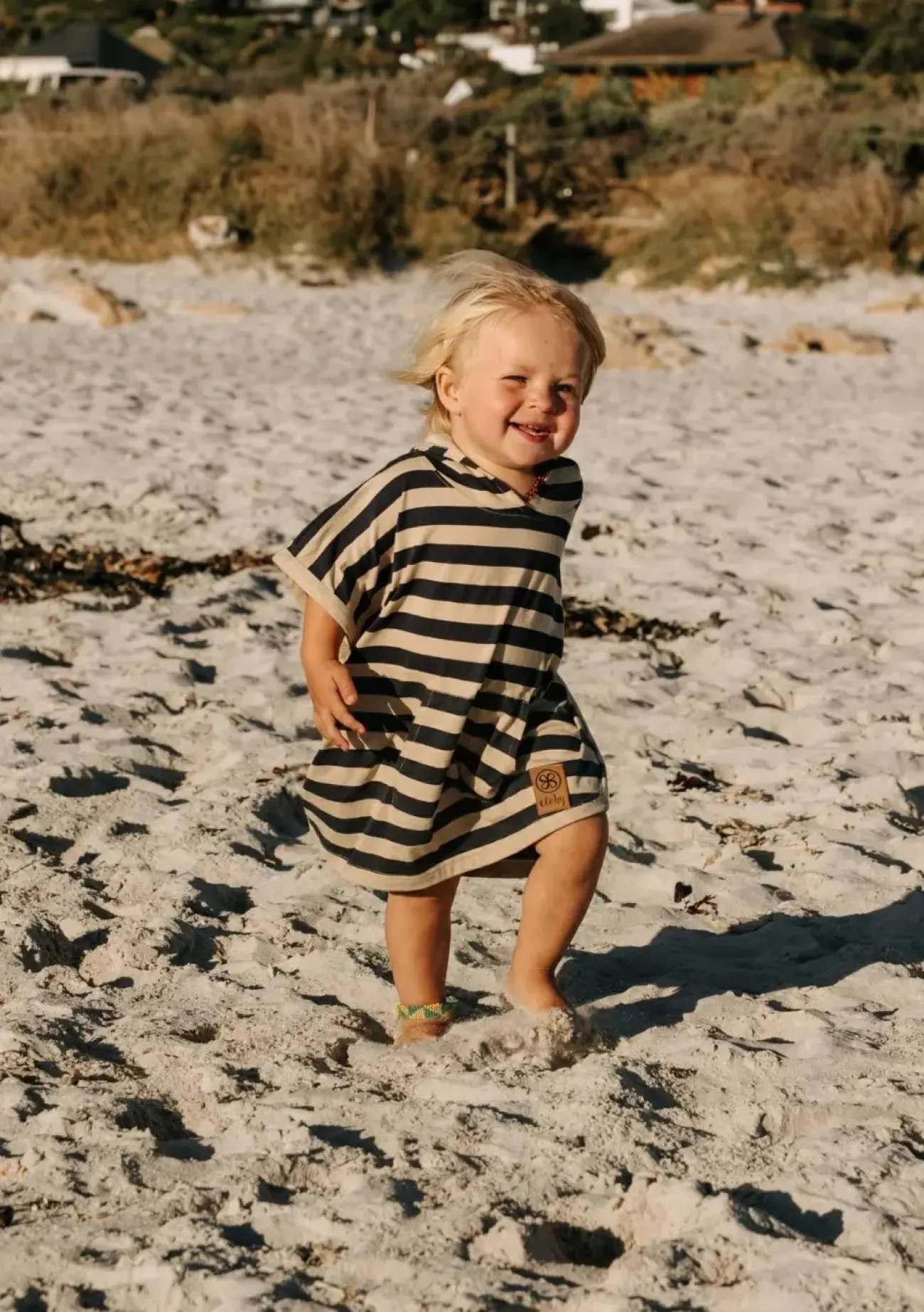 - bequemer Badeponcho (UPF 50+) im maritimen Streifenlook