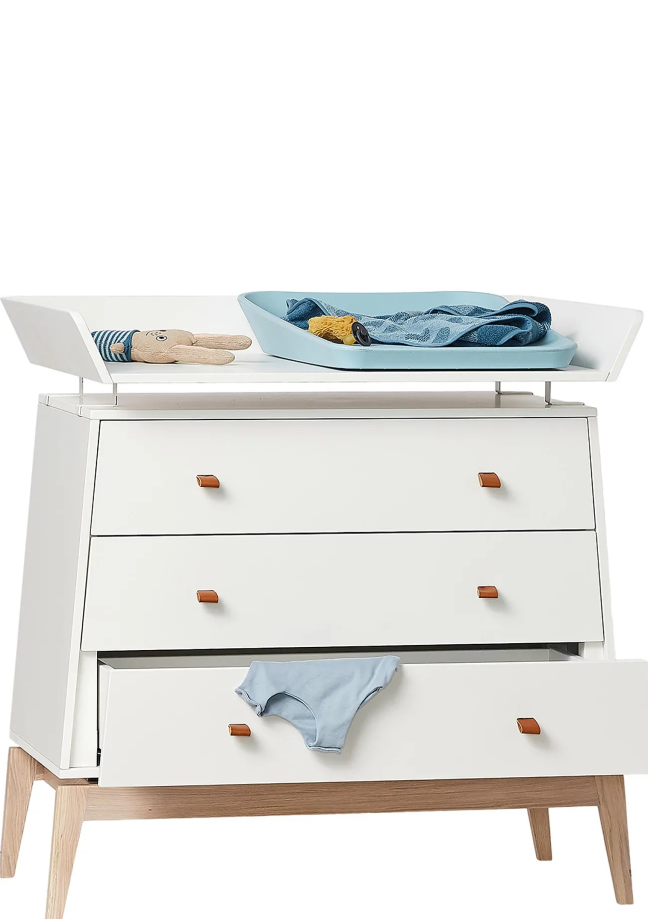 Pflegen, Spielen, Kuscheln, Kennenlernen: Der Wickeltisch ist so viel mehr als ein Ort zum Windeln wechseln! Mit dem praktischen Wickelaufsatz verwandelt sich die Luna Kommode von LEANDER in eine Wickelkommode. Dabei bietet der Aufsatz extra viel Platz: Neben der Wickelauflage sind so Pflegeutensilien, Windeln und Wechselsachen immer griffbereit. Besonders praktisch: Der Aufsatz wird ohne Bohren blitzschnell befestigt und hinterlässt keine Spuren auf der Kommode!