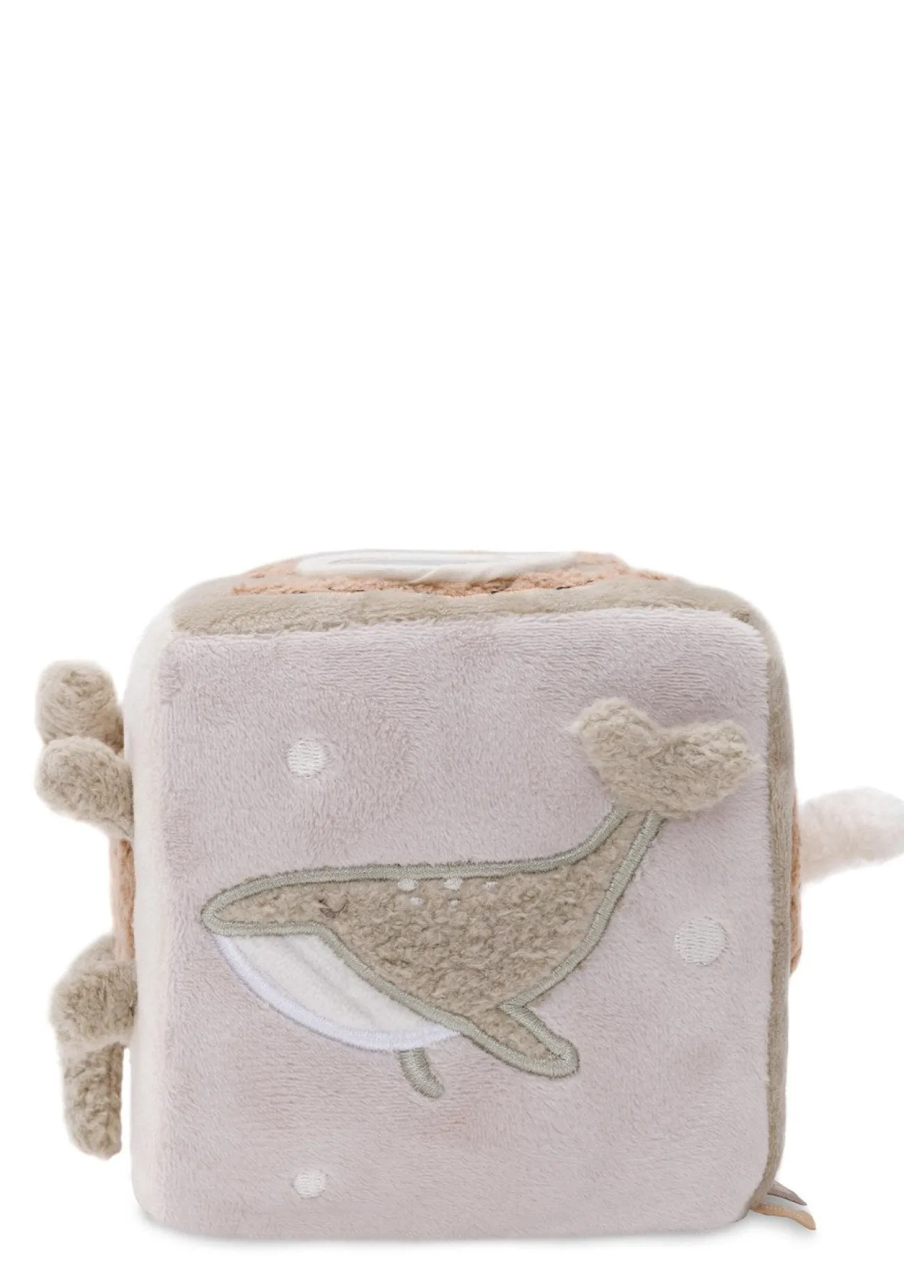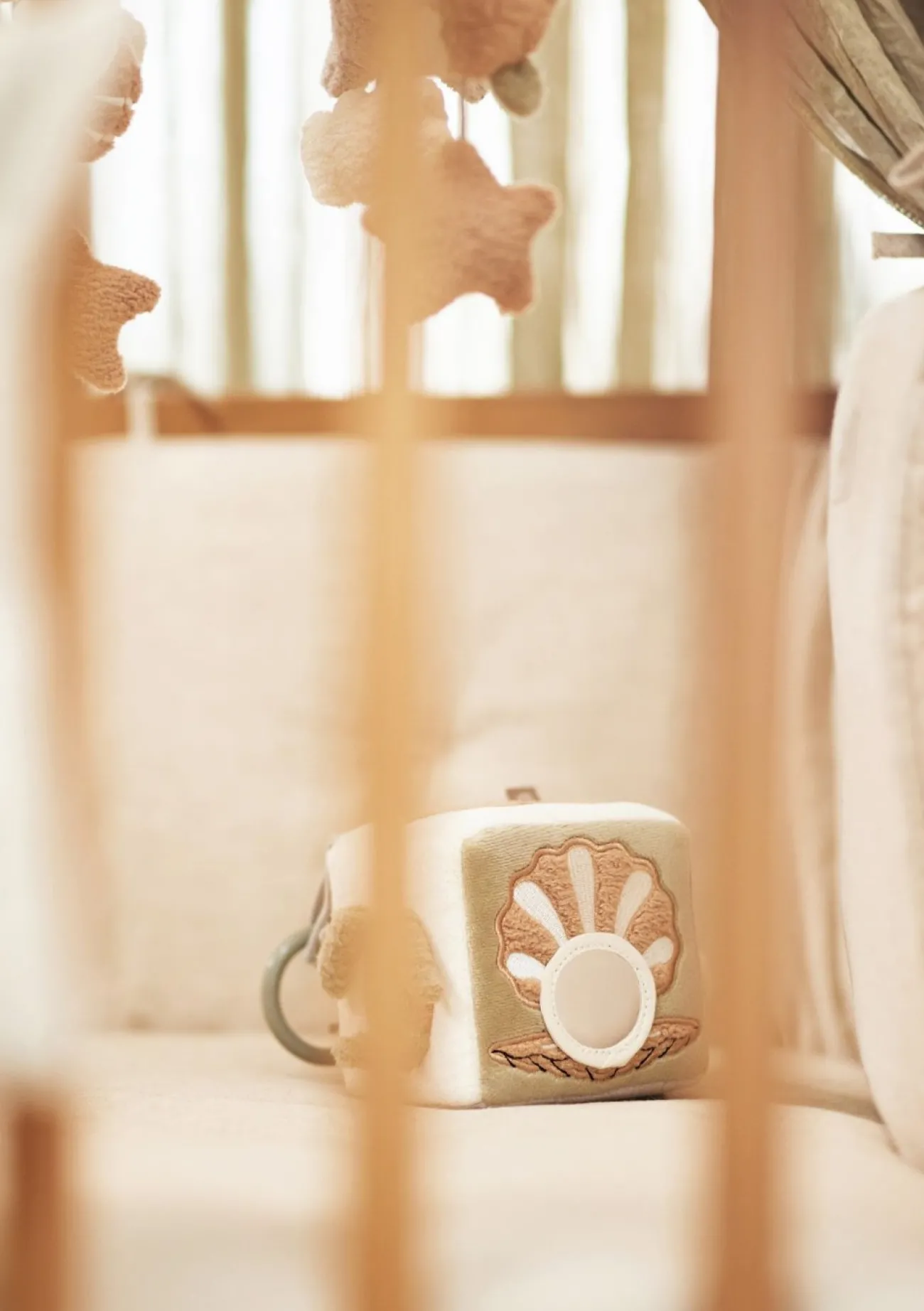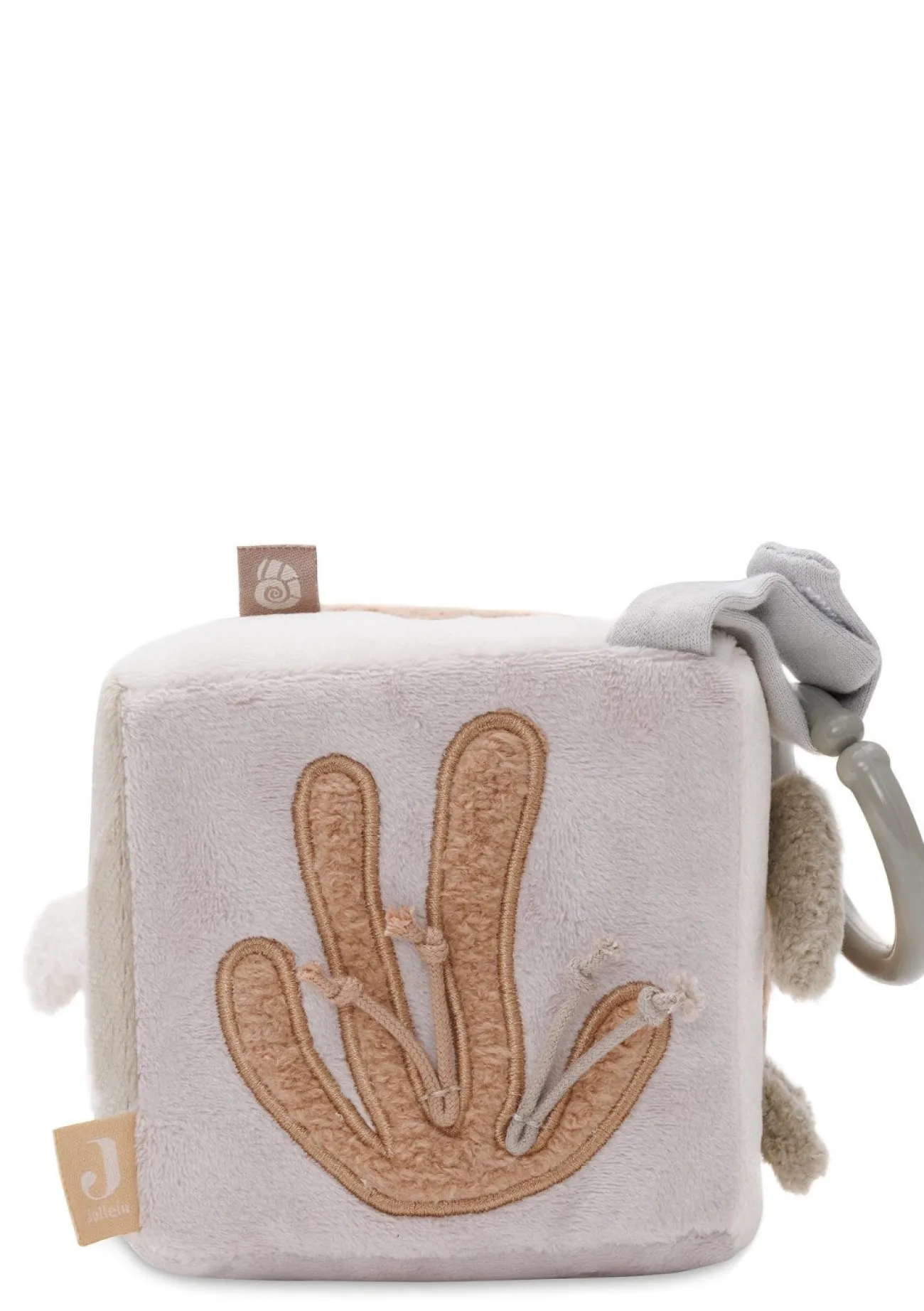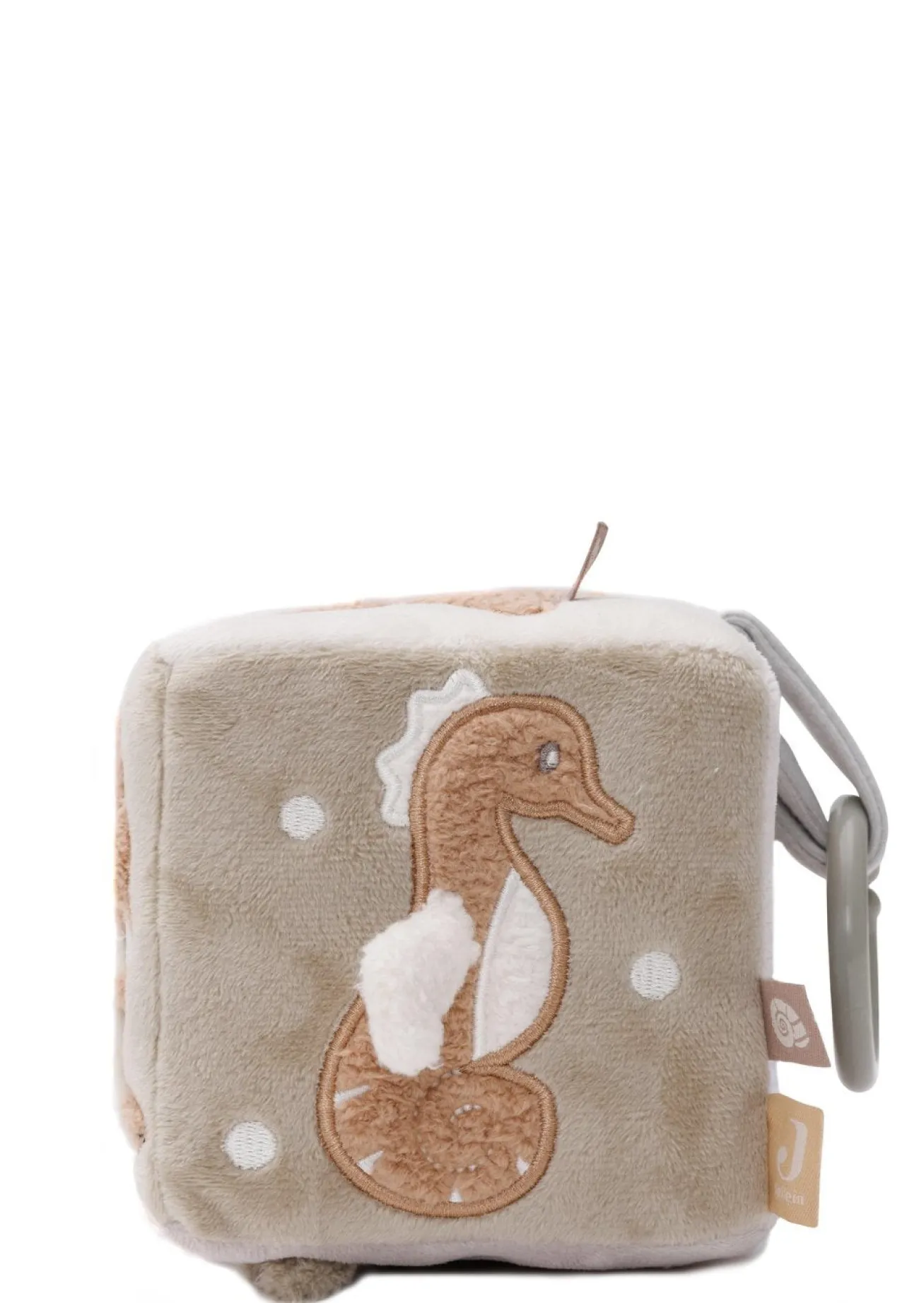 Komm, wir entdecken das Meer! Dieser aufregende Aktivitätswürfel hat einiges zu bieten. Jede der sechs Seiten ist anders gestaltet. Schildkröte, Seestern, Muschel und mehr: Sie alle erwecken die Neugierde und fördern die Feinmotorik deines kleinen Lieblings. Dank des extra weichen Velours ist der Würfel schon für die Allerkleinsten geeignet. Eine schöne Geschenkidee!