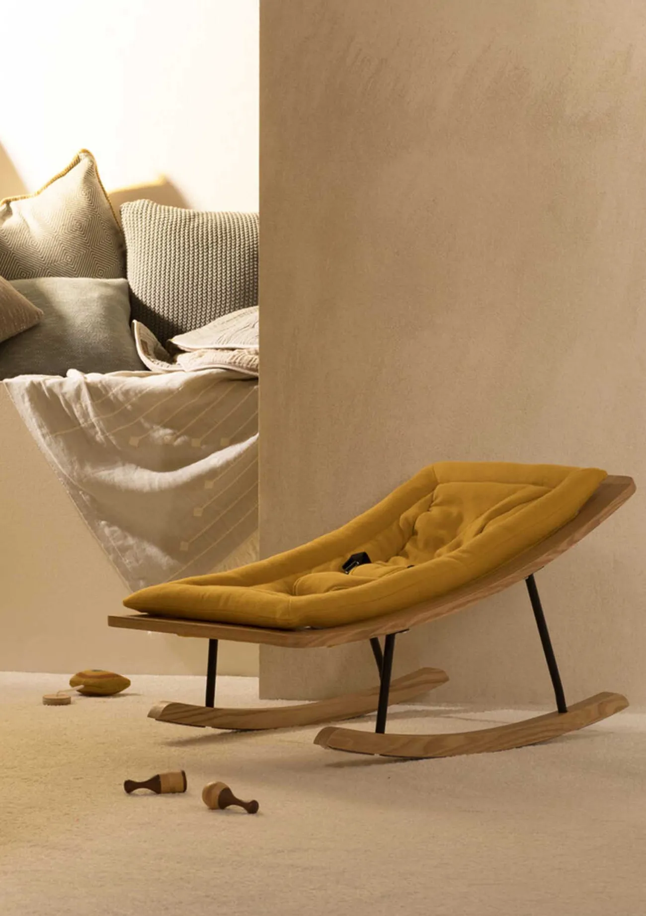 Die Wippe ist der perfekte Rückzugsort für dein Baby. Hier kann es schlafen, spielen, schaukeln und vor allem: von einem sicheren Ort aus Mama und Papa bei Alltagsdingen beobachten. Toll auch in Kombination mit einem Spielebogen nutzbar!