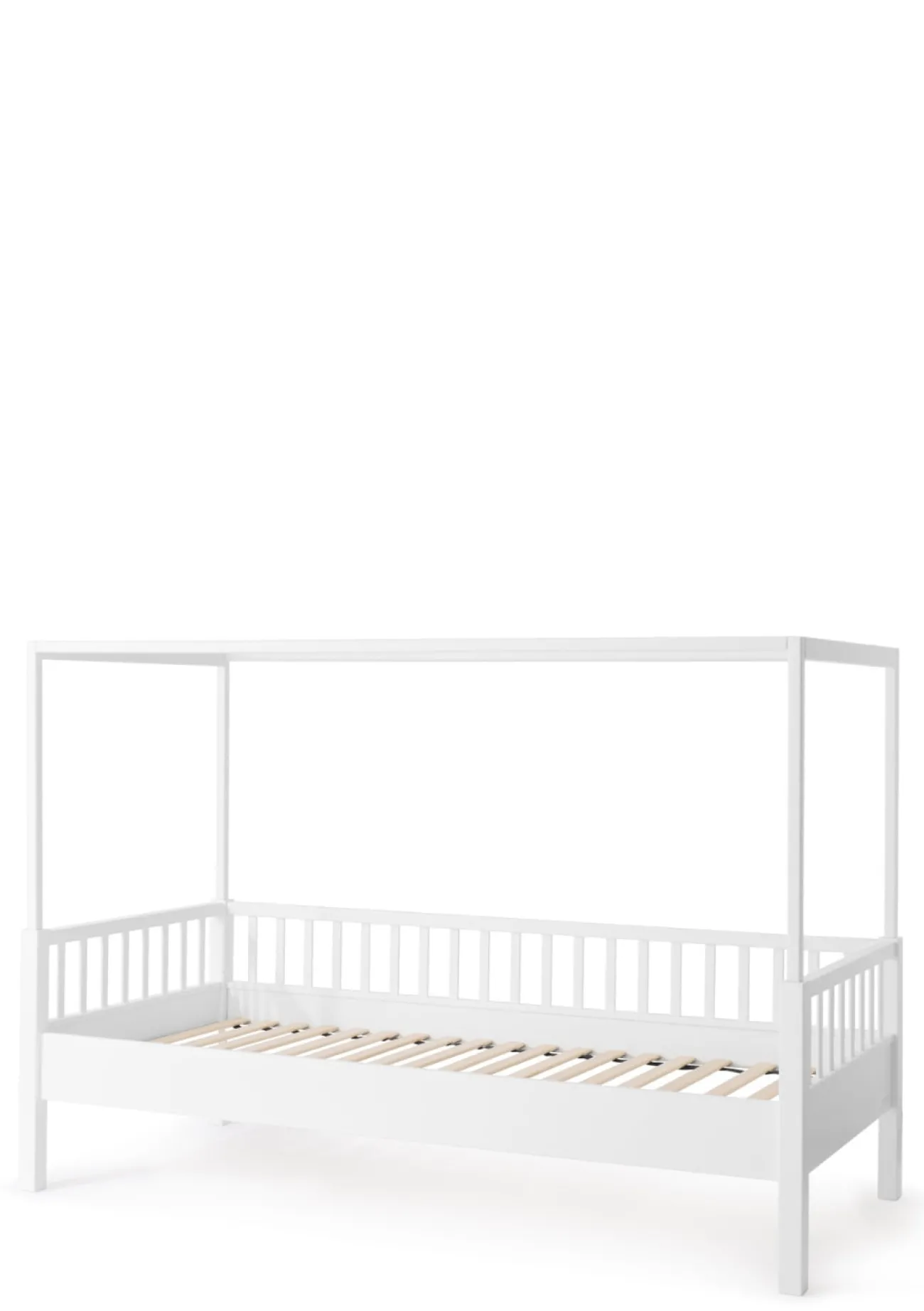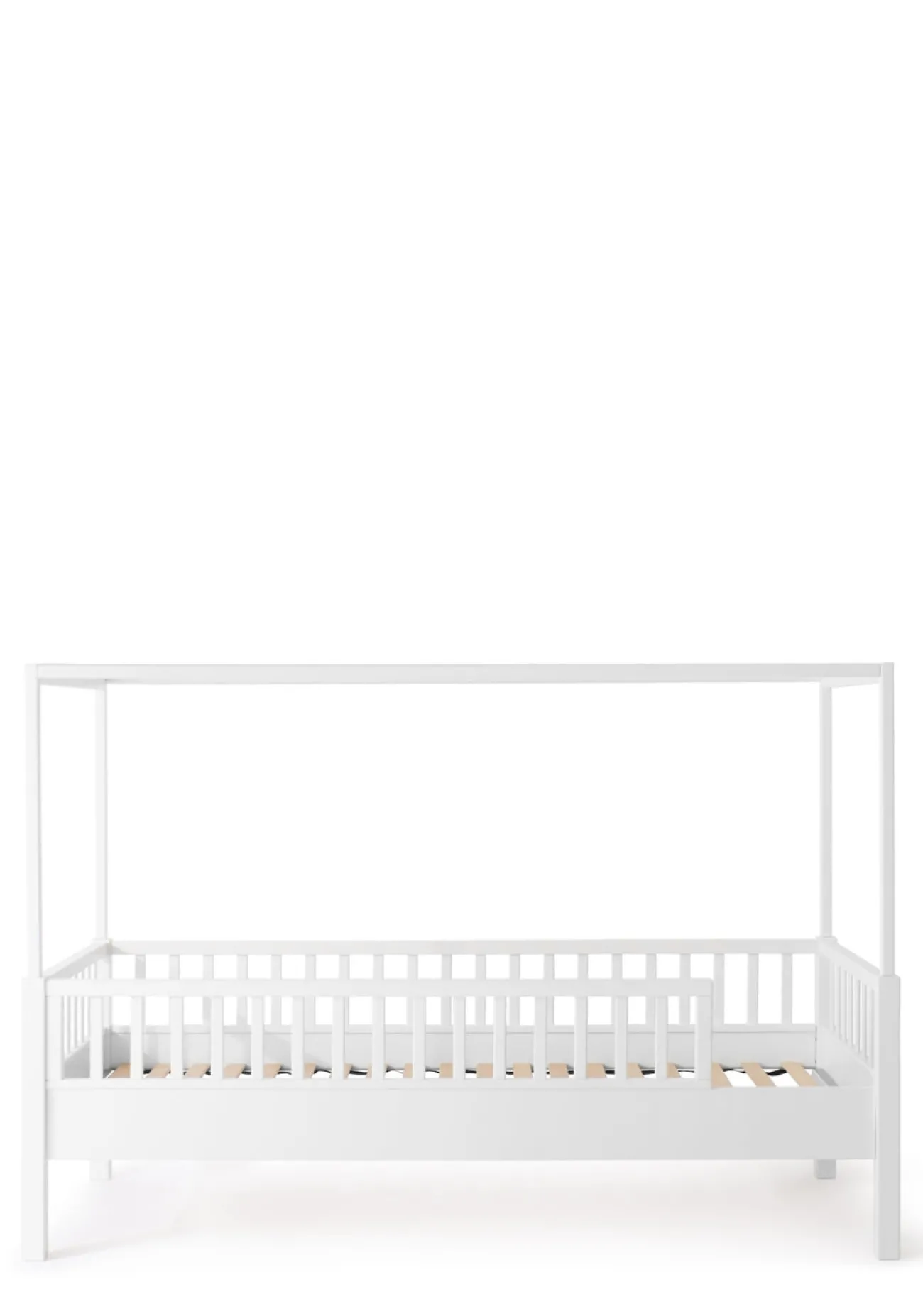 Dieses wunderschöne Baldachinbett von ISLE OF DOGS DESIGN bietet deinem Kind einen behaglichen Rückzugsort und macht dabei auch optisch was her. Je nach Belieben kann es mit einem textilen Baldachin versehen werden, der eine heimelige Schlafatmosphäre schafft und für mehr Privatsphäre sorgt. Das Bett ist aus robustem Massivholz aus nachhaltiger Forstwirtschaft gefertigt und vereint Funktionalität mit hochwertigem Design. Es verfügt über einen stabilen Bettrahmen mit drei Gitterseiten und bietet Kindern ab etwa drei Jahren eine sichere Schlafumgebung. Für noch mehr Schutz vor dem Herausfallen kann ein optional erhältliches Bettgitter für die offene Seite erworben werden. Dank der großzügigen Liegefläche eignet sich das traumhaft schöne Bett sowohl für kleinere Kinder als auch für Teenies und Jugendliche und wird zum langlebigen Begleiter!