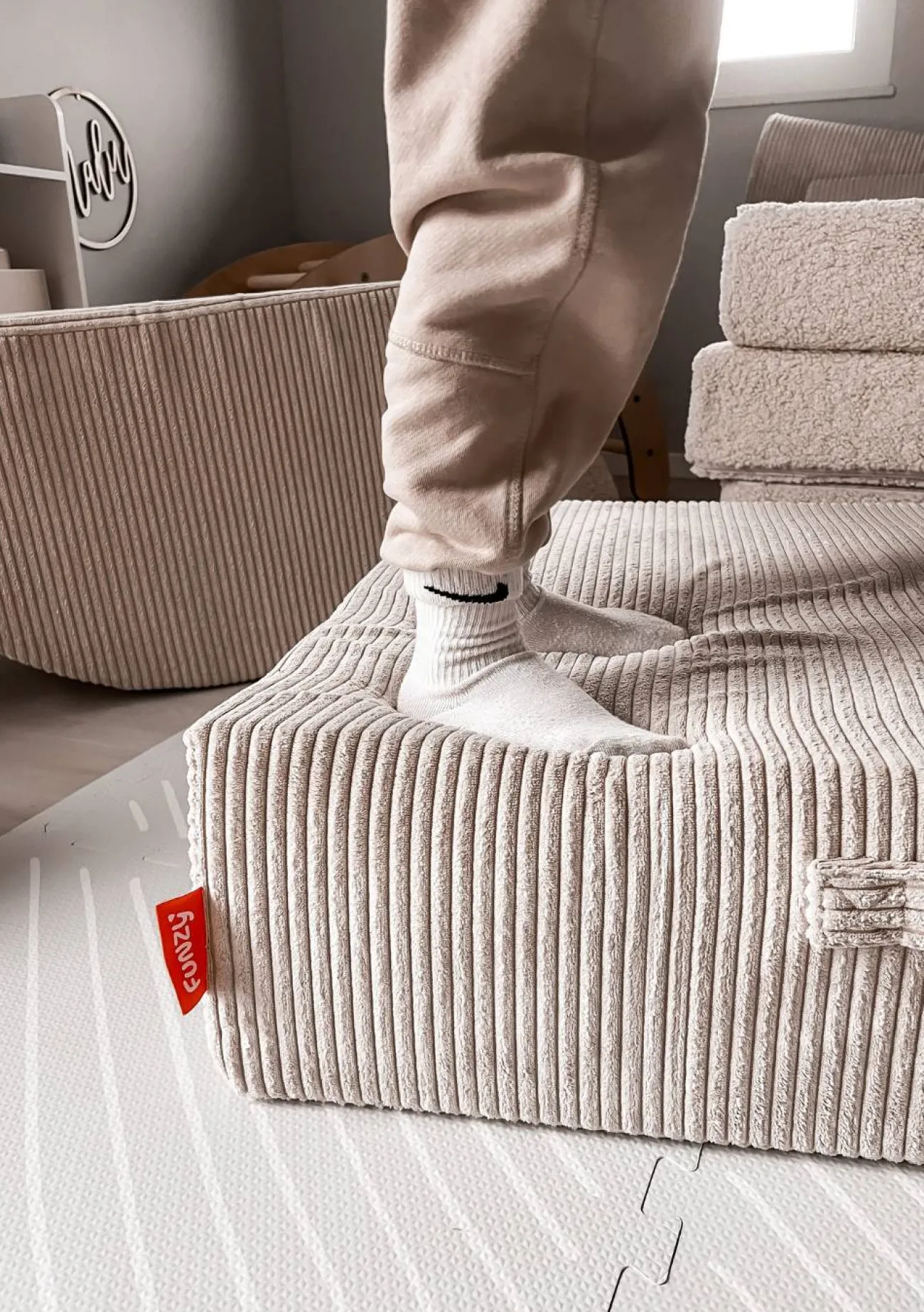 Toben, springen, träumen: Mit diesem coolen Polstermöbel verwandelst du das Kinderzimmer in einen Ort voller Lachen, Spielspaß und Gemütlichkeit. Entwickelt für kleine Energiebündel greift die federnde Hüpfmatte den natürlichen Bewegungsdrang von Kindern auf und unterstützt die Entwicklung von Koordination und Körperbeherrschung. Der hochwertige Kern aus PUR-Schaumstoff mit integriertem Taschenfederkern bietet die ideale Kombination aus Komfort und Sprungkraft und sorgt dafür, dass das Polster jede Menge Tobespaß aushält. Alternativ fungiert es aber auch als bequemes Sitzmöbel zum Kuscheln und Relaxen. Der weiche, strapazierfähige Cordbezug fühlt sich super angenehm an und lässt sich ganz unkompliziert in der Waschmaschine reinigen – perfekt für den turbulenten Familienalltag. Ob als Erweiterung zum legendären Funzy Spielsofa oder als flexibler Solo-Künstler, das formstabile Hüpfpolster bringt Freude, Bewegung und Stil in dein Zuhause.