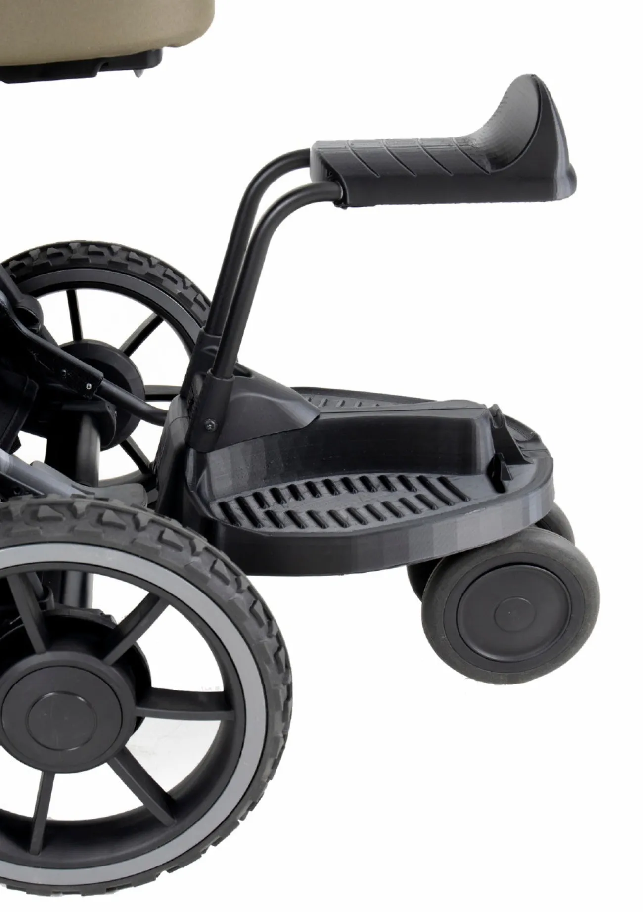 Das Board wird einfach am Fahrgestell befestigt und verwandelt deinen Kinderwagen im Handumdrehen in eine flexible Lösung für zwei Kinder. Dank langlebiger Solight Ecco-Reifen und integrierter Federung fährt das ROADEO ruhig und stabil mit – auch auf unebenem Untergrund.
