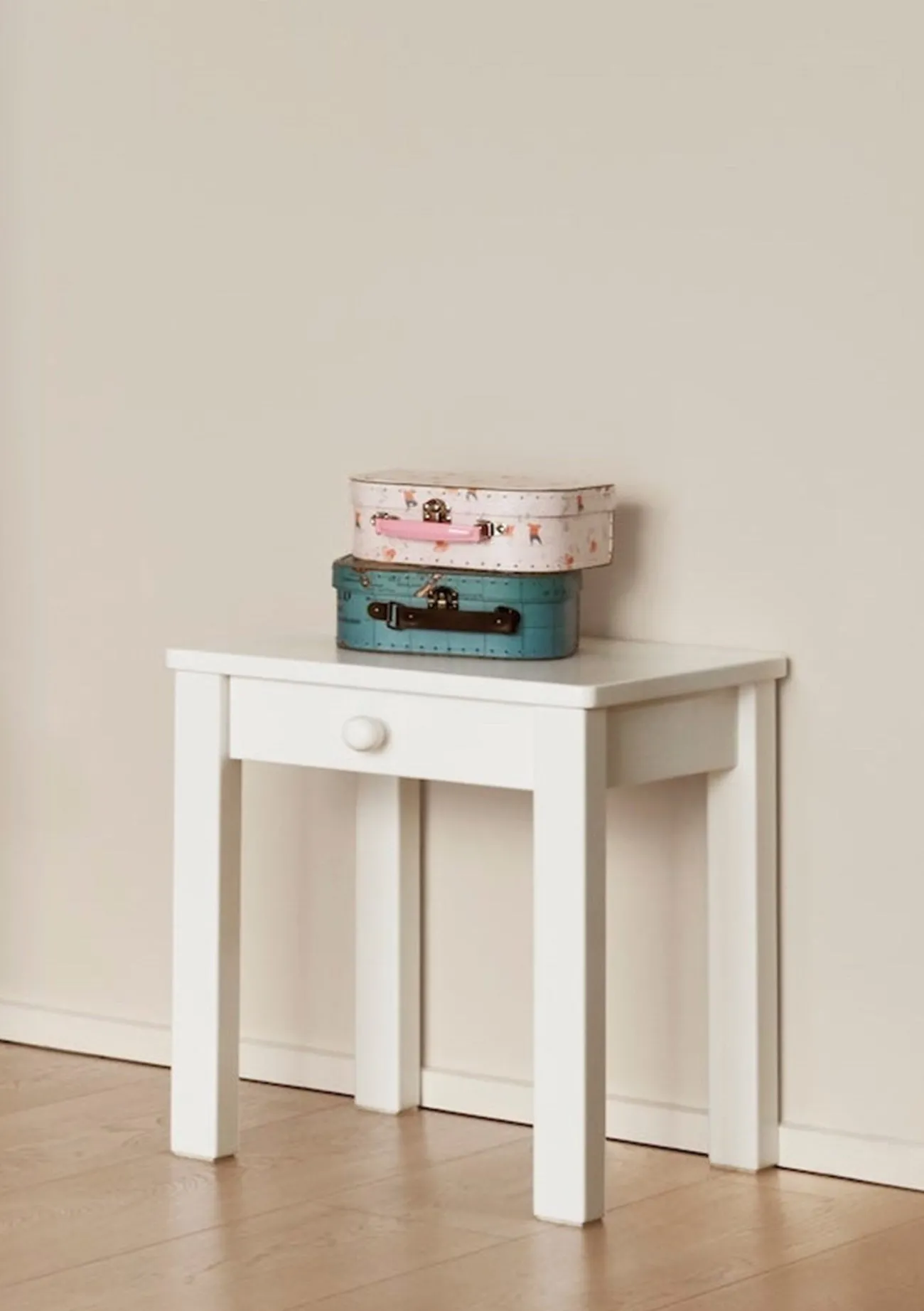 Ob die Gute-Nacht-Lektüre, eine Taschenlampe oder die Trinkflasche – dieser Nachttisch von ISLE OF DOGS DESIGN bietet deinem Kind eine Ablage in Bettnähe und macht dabei auch optisch was her. Dank des cleanen Designs ist der kleine Beistelltisch ein kombinationsfreudiges Möbelstück – zu jedem Interieur passend. Die glatte, sorgfältig bearbeitete Oberfläche ist kinderfreundlich und lässt sich einfach reinigen. Die abgerundeten Kanten gewährleisten bestmögliche Sicherheit im Kinderzimmer. Den Nachttisch gibt es in zwei Ausführungen: mit oder ohne Schublade. Außerdem kann er durch eine Handbemalung individuell gestaltet und mit Wunschmotiv und dem Namen deines Kindes versehen werden. Eine schöne Idee!