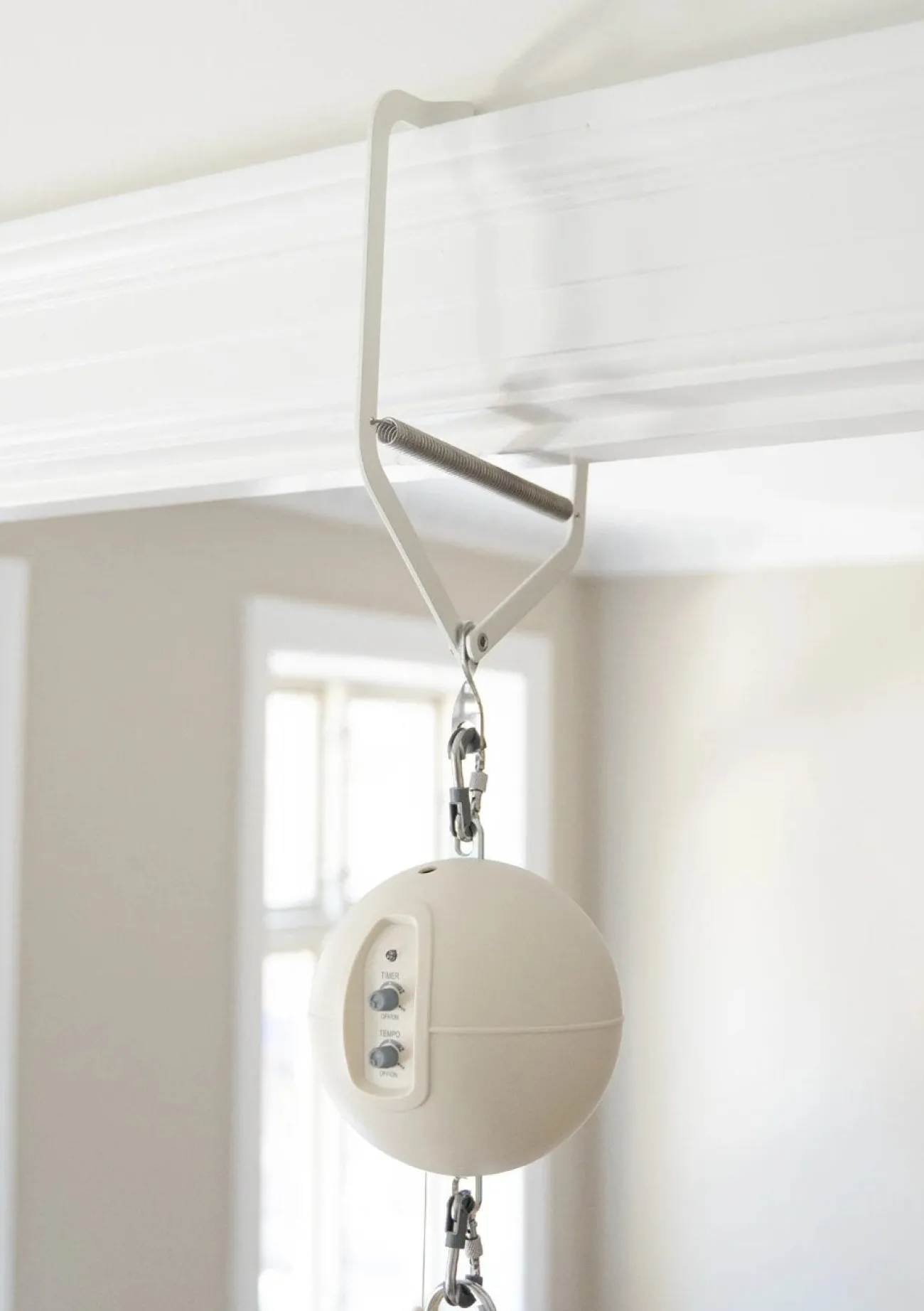 Bitte beachte: Der Abstand von der Oberseite des Türrahmens bis zum Boden muss mind. 2,20m betragen, wenn du die Türklammer mit Federwiege samt Motor verwenden möchtest. Wenn du also Motor samt Federwiege aufhängen und zeitgleich transportabel haben möchtest, schau dir auch das stilvolle Federwiegen-Gestell an!