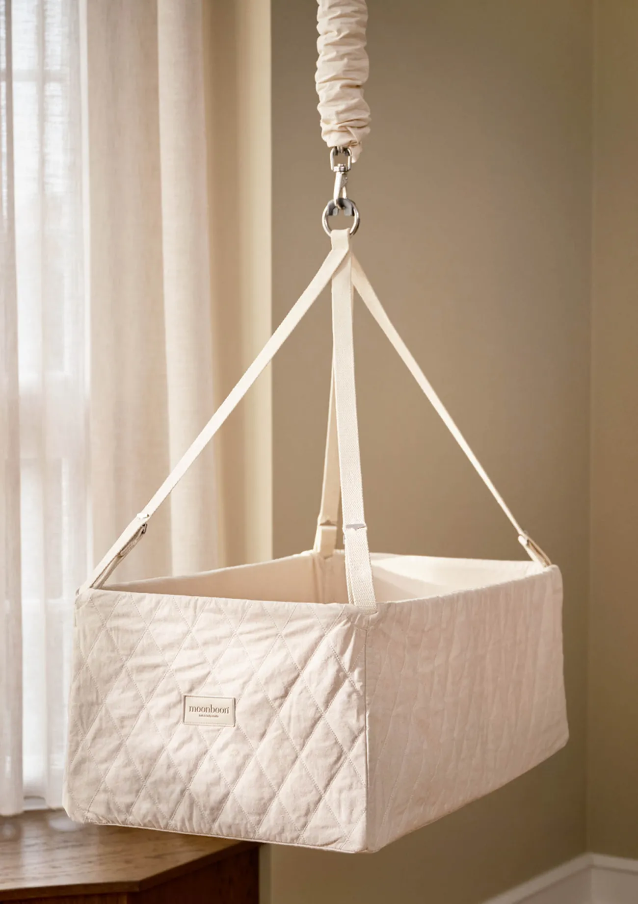 So wunderschön – die neue Wiege von MOONBOON! Sie kombiniert Babys Schlaf auf einer flachen, festen Unterlage mit wiegenden Bewegungen, wie wir sie bereits von der beliebten MOONBOON Federwiege kennen. Ein Klassiker neu geboren!