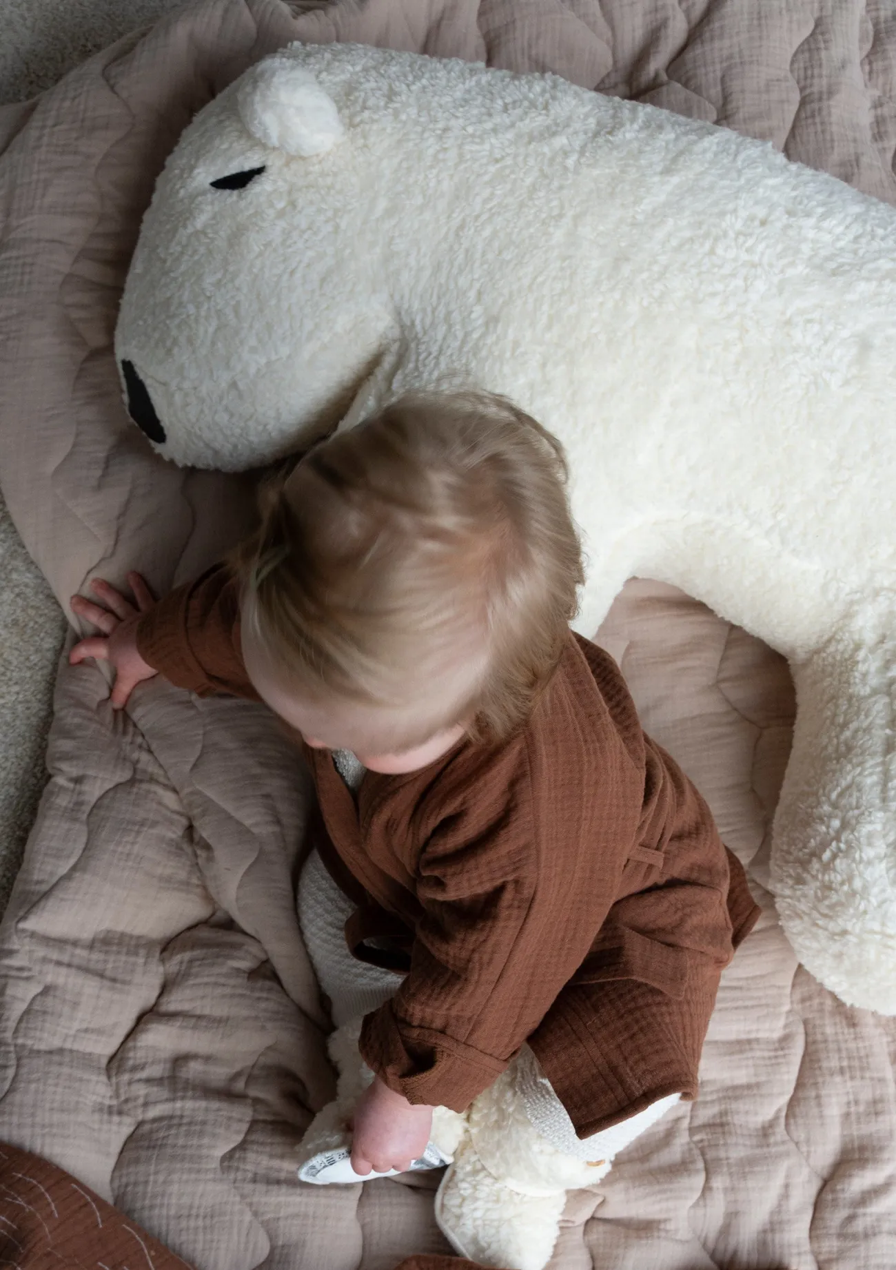 Ein perfektes Accessoire für jedes Kind, das sich auf einer Reise gerne mal entspannt anlehnen möchte. Der Eisbär ist aus kuschligen Materialien, sieht knuffig aus und bereitet deinem Kind sowohl Freude, als auch Gesellschaft! Denn er ist der perfekte Buddy auf jedem Abenteuern.