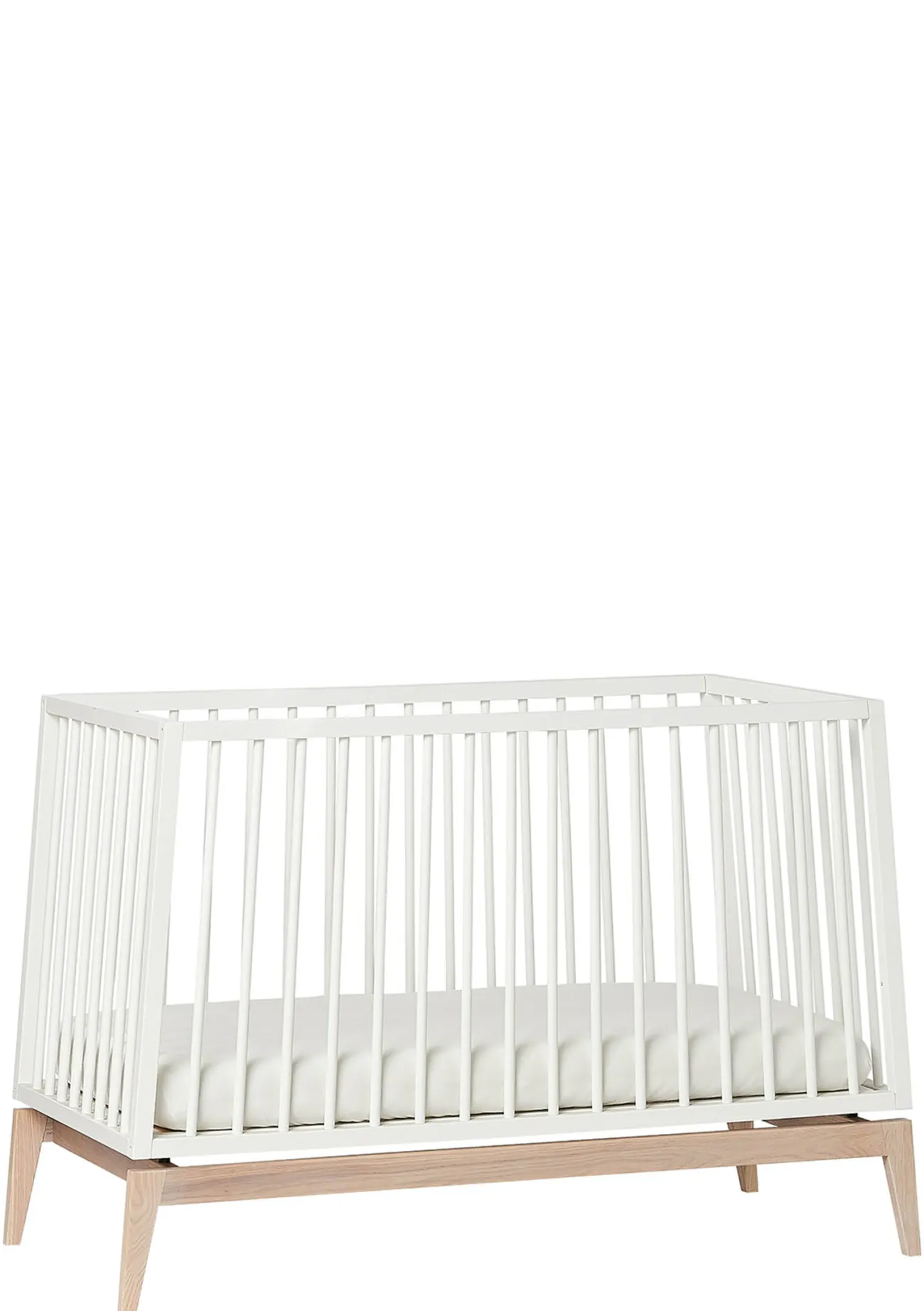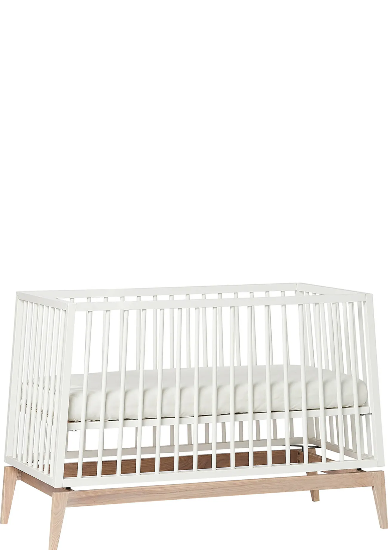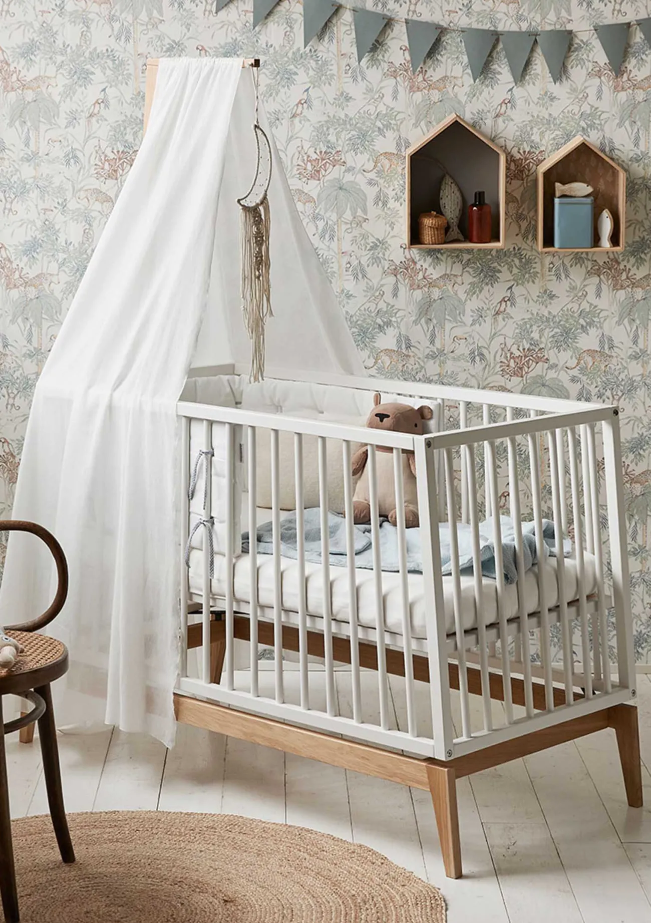 Dieses Babybett vereint stilvolles, nordisches Design mit höchstem Komfort für dein Baby. Die klare Formensprache mit leicht ausgestellten Beinen aus massivem Eichenholz fügt sich harmonisch in jedes Kinderzimmer ein und verleiht ihm eine zeitlose Eleganz.