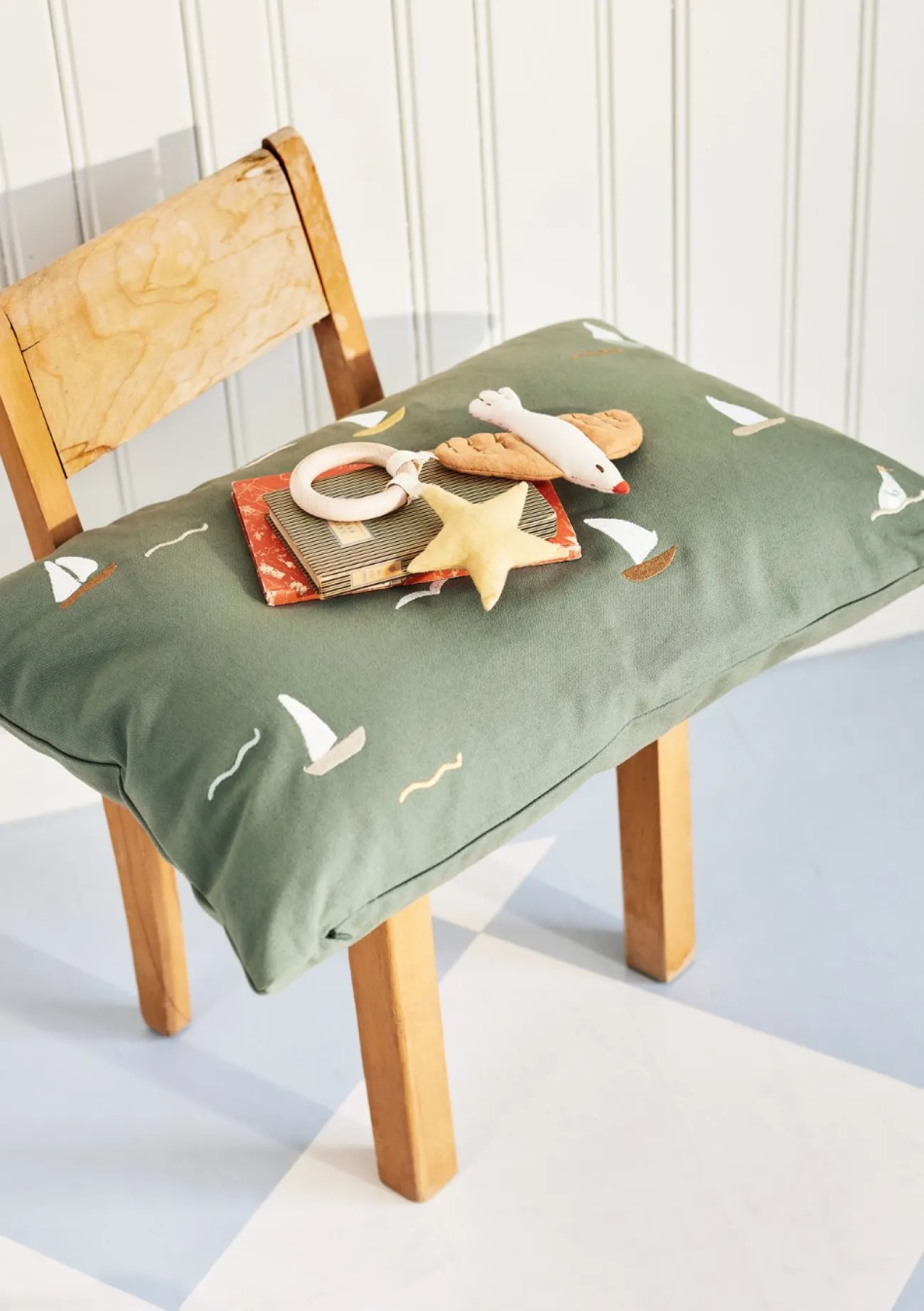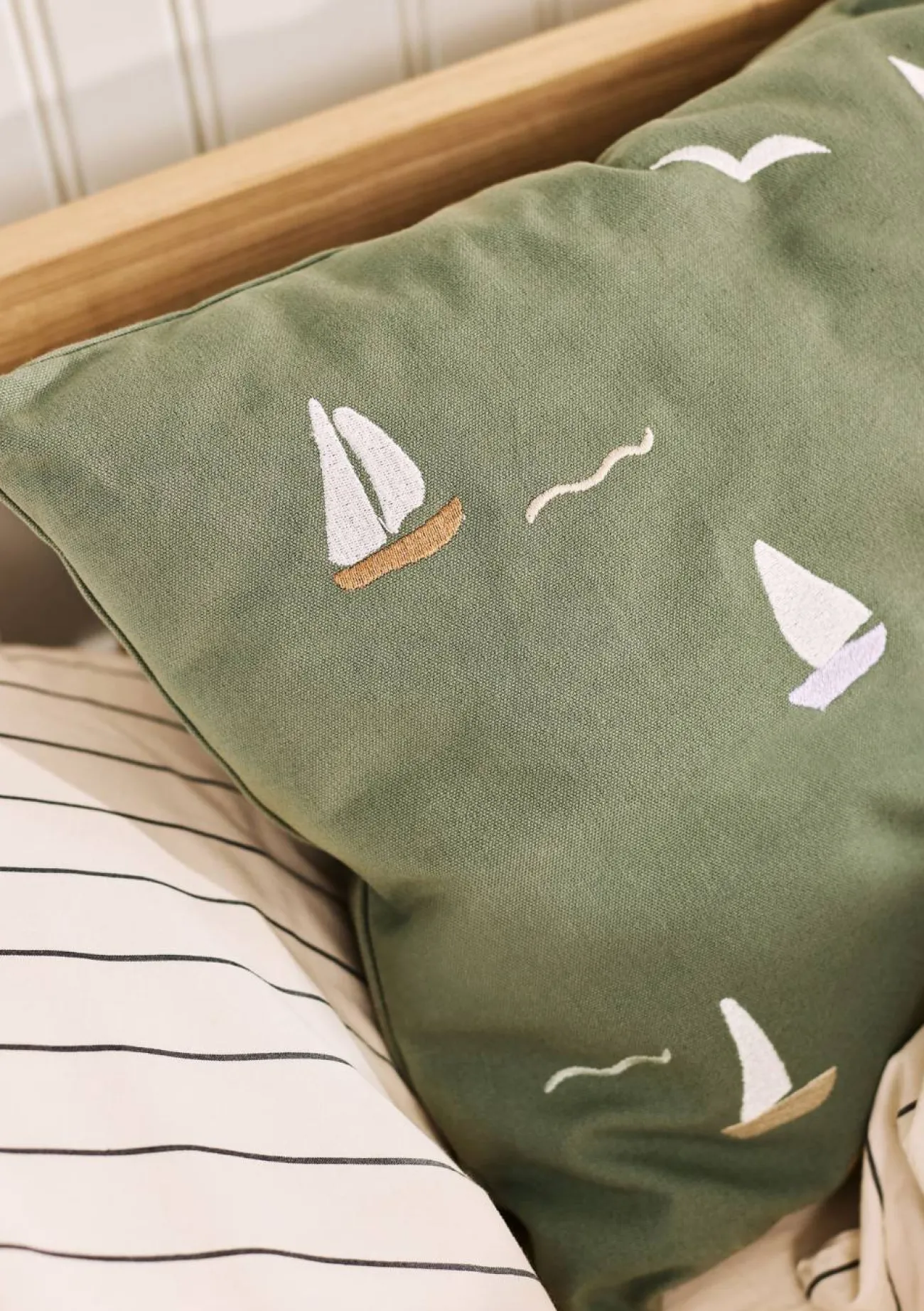 Dieses wunderschöne Kissen von der Marke DEAR APRIL begeistert mit viel Liebe zum Detail. Das aus hochwertigen Bio-Materialien gefertigte Modell verzaubert nämlich mit imposanten Stickereien von Segelbooten und Möwen und hat das Potenzial zum Lieblingsstück!