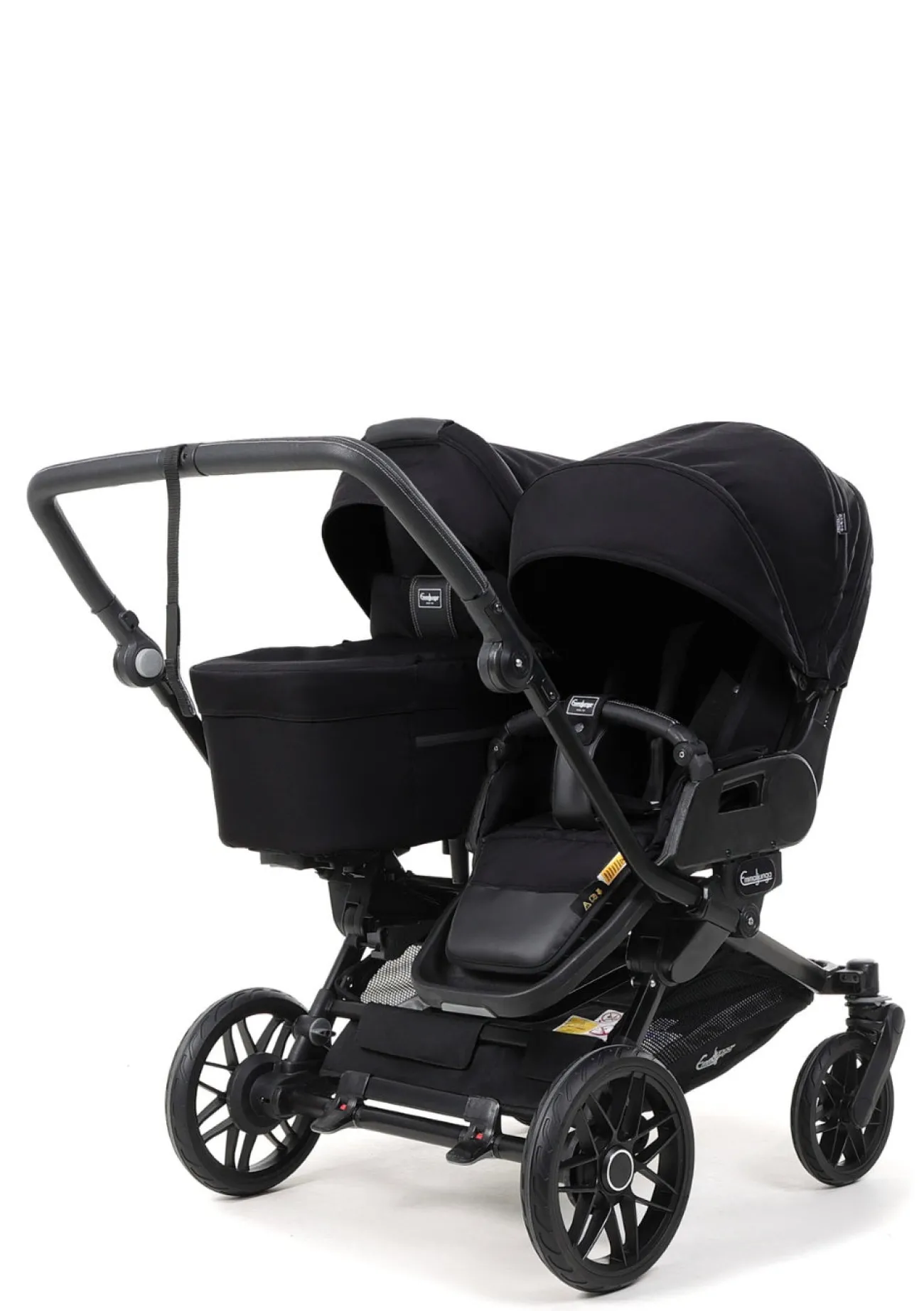 Flexibel, wendig und durchdacht für zwei: Dieser Kinderwagen ist die ideale Lösung für Familien mit Baby und älterem Geschwisterkind. Das Set besteht aus dem Urban-Gestell, einem Liegeteil und zwei FLAT+ Sitzen mit vollständig flacher Liegeposition – so kann der Kinderwagen bereits ab Geburt genutzt werden. Während dein Neugeborenes sicher in der gemütlichen Babywanne schläft, genießt das ältere Kind den Komfort des FLAT+ Sitzes. Später sitzen beide Kinder nebeneinander in den komfortablen Sportsitzen mit flacher Liegefläche.