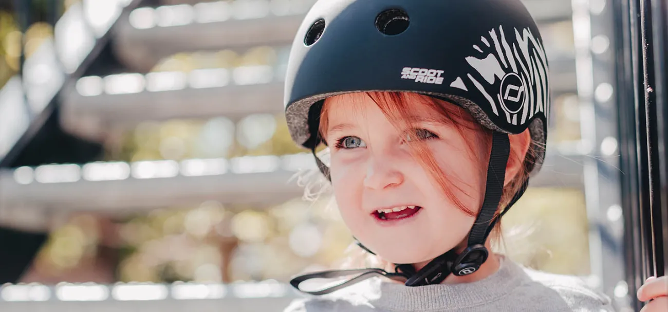 Sehen und gesehen werden: Die oberste Regel im Straßenverkehr. Mit dem stylischen Helm von SCOOT AND RIDE fällt dein Kind auf – im Hellen und im Dunkeln!