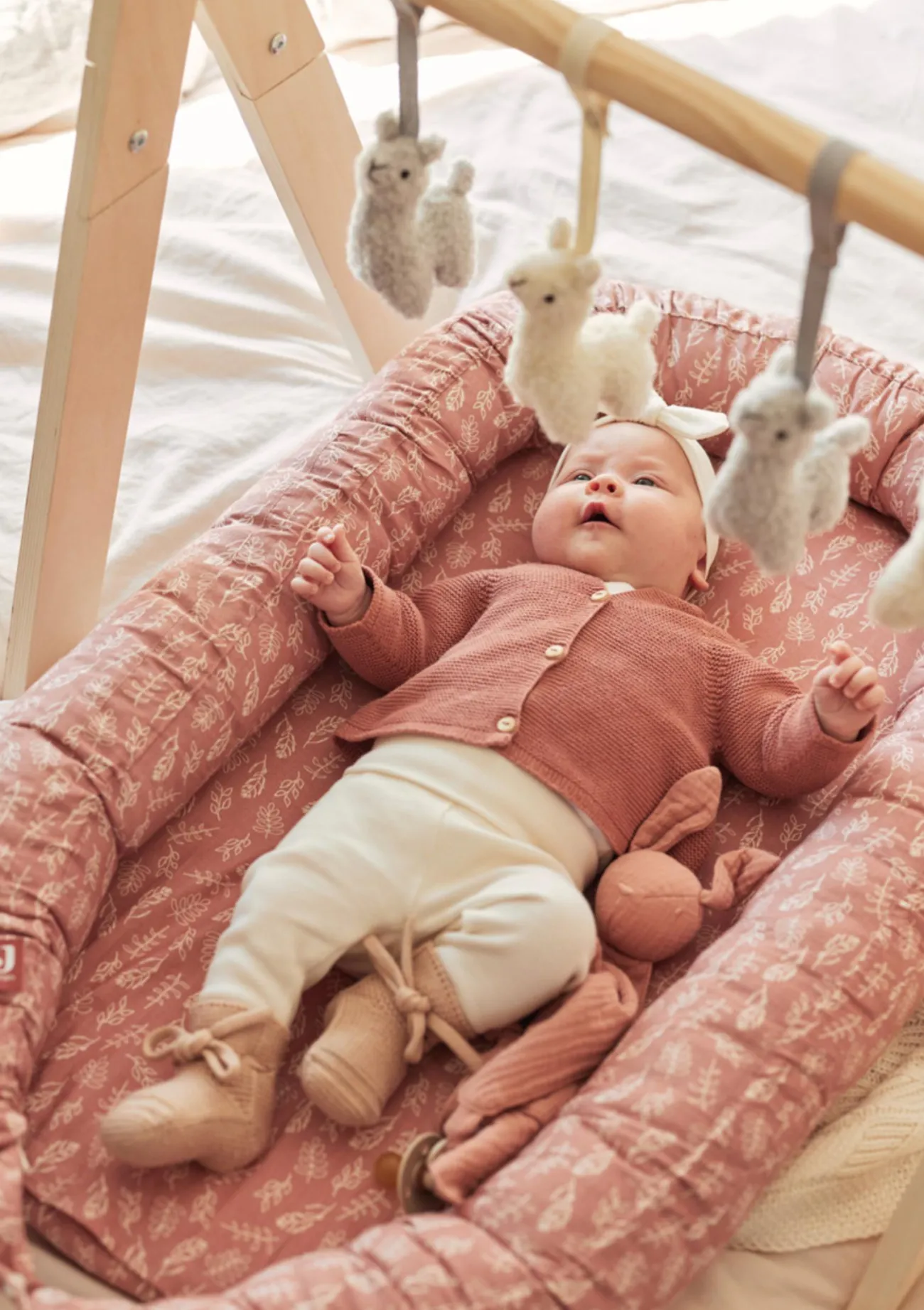 Gefertigt aus stabilem Holzwerkstoff, überzeugt das Trapez mit seiner schlichten, modernen Optik und lässt sich wunderbar mit separat erhältlichen Spielzeuganhängern kombinieren. Ob über einer Spielmatte oder auf der Krabbeldecke – das Babytrapez ist ein schönes Basic für die ersten Lebensmonate und ein stilvolles Highlight im Babyzimmer.