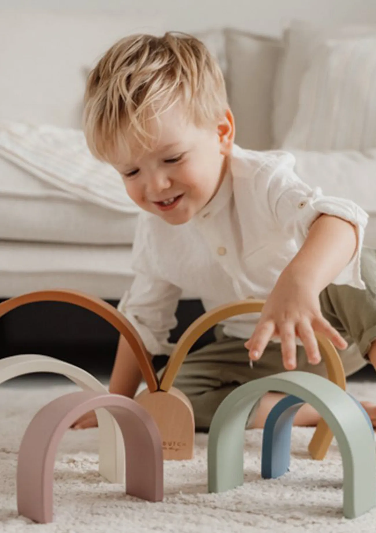 Dieser wunderschöne Regenbogen in trendigen Vintage-Farben sorgt nicht nur für Spiel & Spaß, sondern macht sich auch super als Deko-Element in jedem Kinderzimmer!
