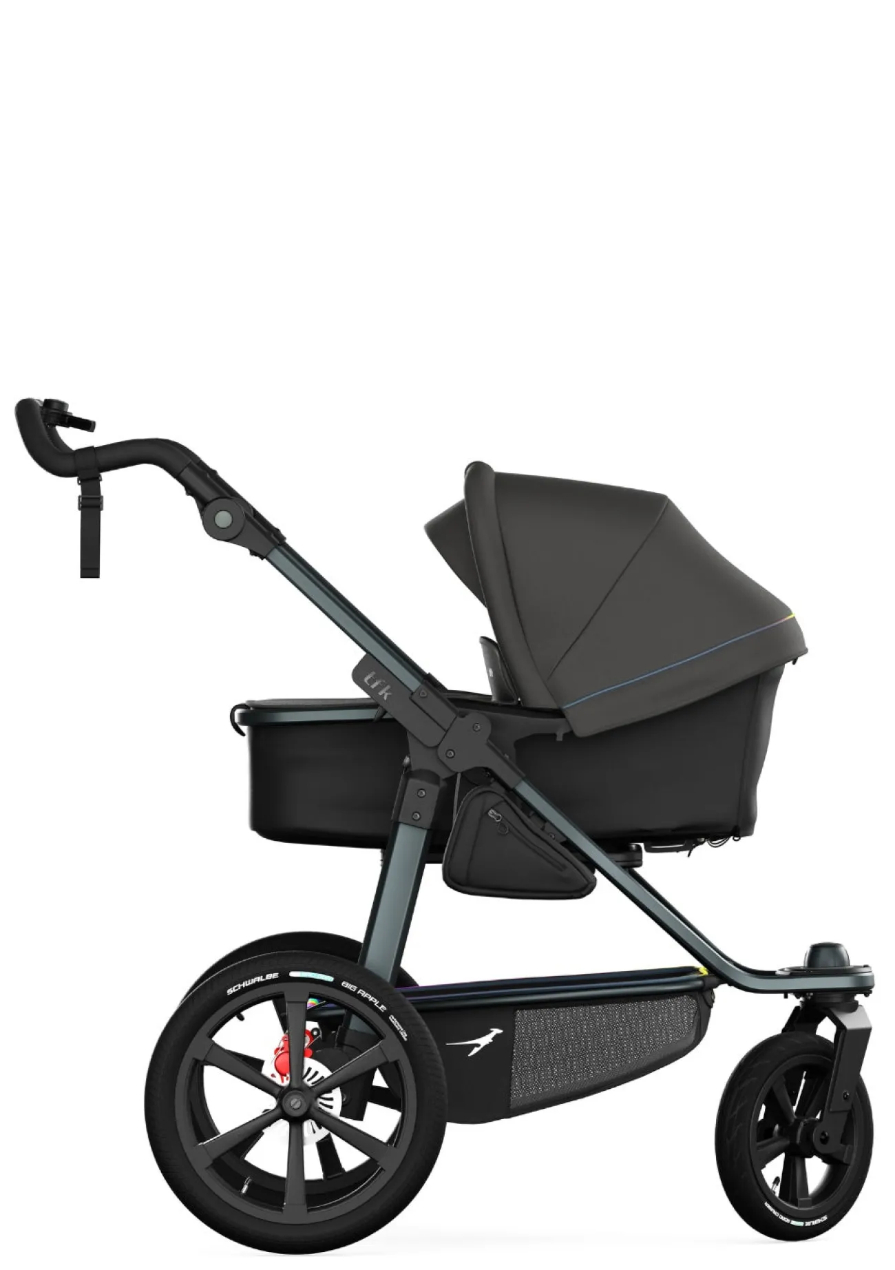 Ob beim Joggen, beim Spaziergang im Park oder auf anspruchsvollerem Terrain – der tfk pro ist gemacht für Eltern, die aktiv unterwegs sind und dabei höchsten Wert auf Qualität, Komfort und Sicherheit legen. Als TÜV-zertifiziertes Modell mit überarbeitetem Bremssystem (mit integrierter einhändig bedienbarer Hand- und Feststellbremse), optimaler Bereifung und cleverem Zubehör ist er der perfekte Partner für sportliche Familien, die keine Kompromisse machen wollen.