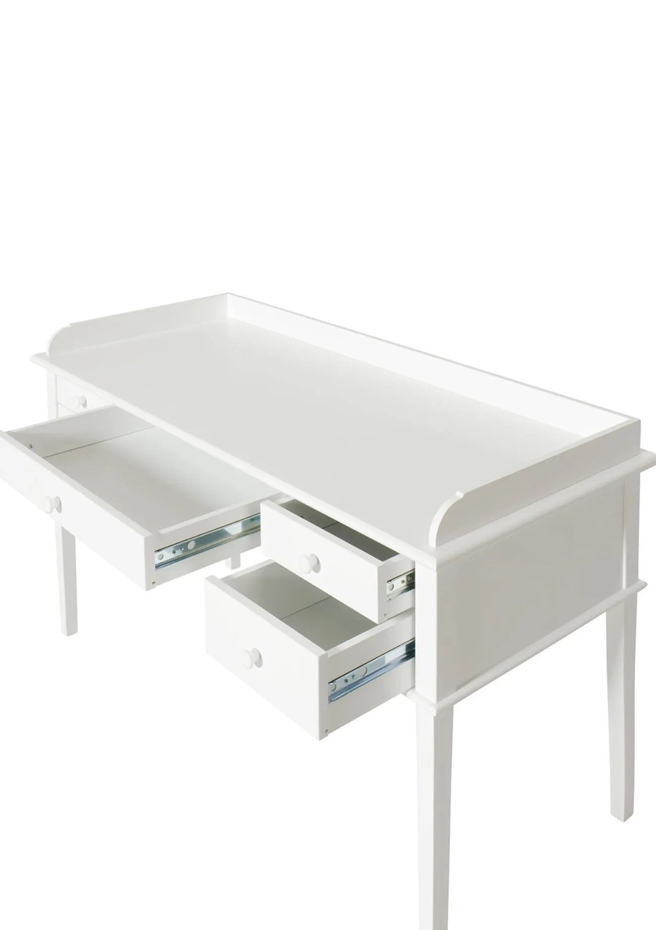 Ein stilechter Klassiker für’s Kinder- und Jugendzimmer! Dieser Schreibtisch wächst dank austauschbarer Beine mit und ist so ein lebenslanger Begleiter. Die fünf Schubladen bieten genug Stauraum für Buntstifte, Tagebücher und alles, was kleine und größere Kreative sonst noch brauchen.
