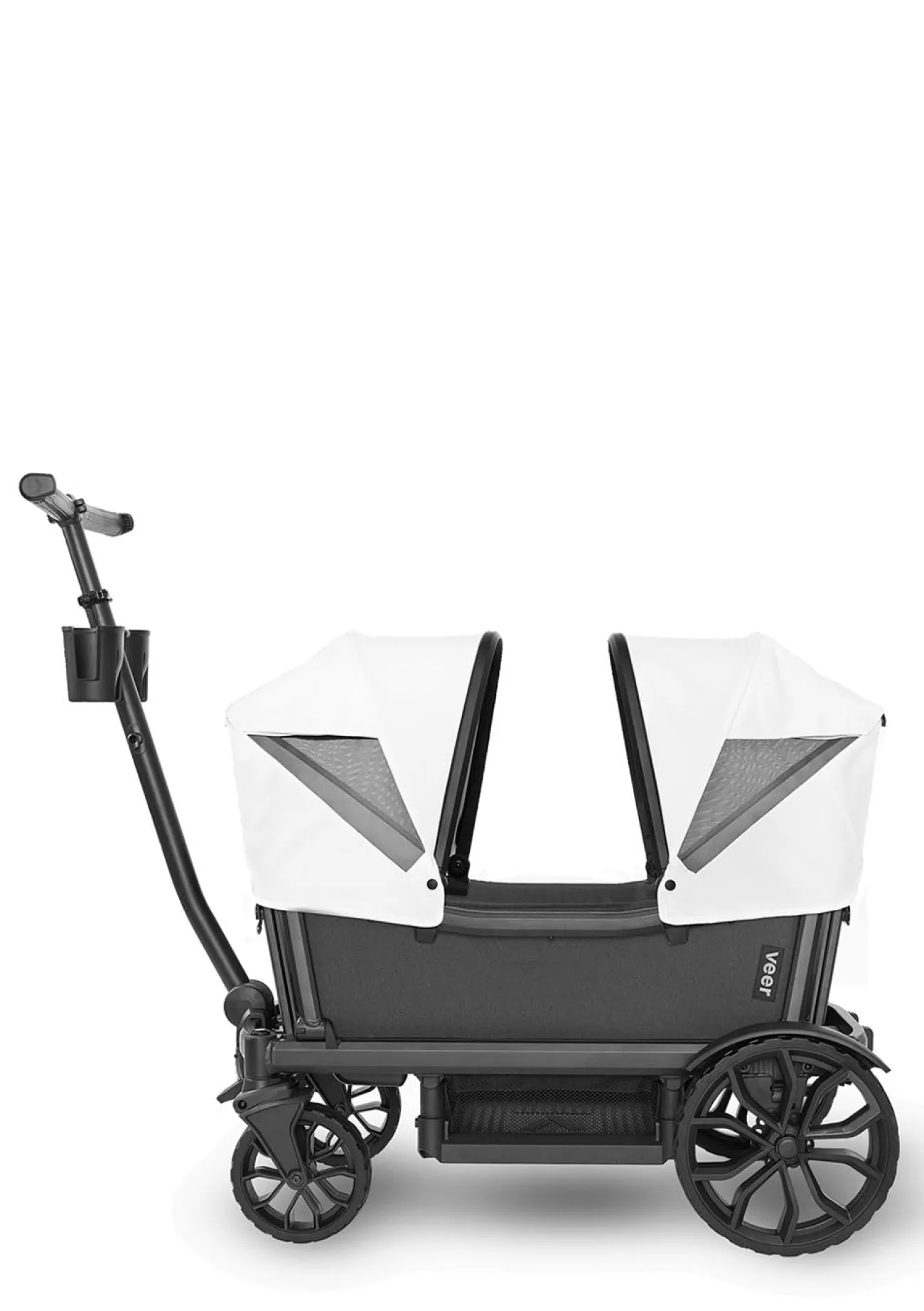 Das Sonnendach von VEER schützt nicht nur vor Sonne, sondern auch vor Wind und leichtem Regen. Es lässt sich sehr einfach am Cruiser anbringen und auf beiden Seiten flexibel montieren. Pro Cruiser lassen sich sogar bis zu zwei Sonnendächer anbringen – eins über jeden Sitz.