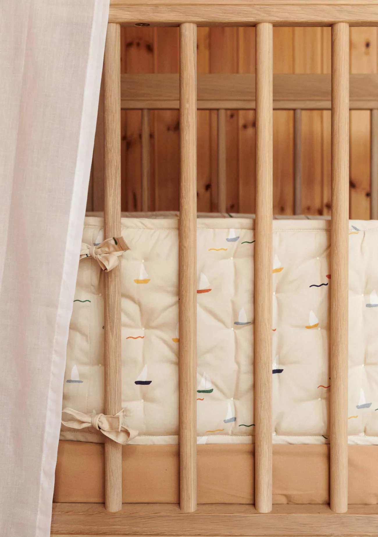 Mit einem Nestchen schützt du deinen Liebling vor dem Anstoßen am Gitterbett. Dieses Modell zeigt sich im maritimen Look: Ein kleines Boot, das vom Wind getragen übers Wasser gleitet – der Pond Boats-Druck fängt diese zeitlose Magie und kindliche Abenteuerlust wunderbar ein. Die stilvolle Steppoptik der Bettumrandung aus ökologischen Materialien unterstützt den ansprechenden Look. Genau richtig für einen harmonischen Schlafplatz zum Wohlfühlen und Entspannen!