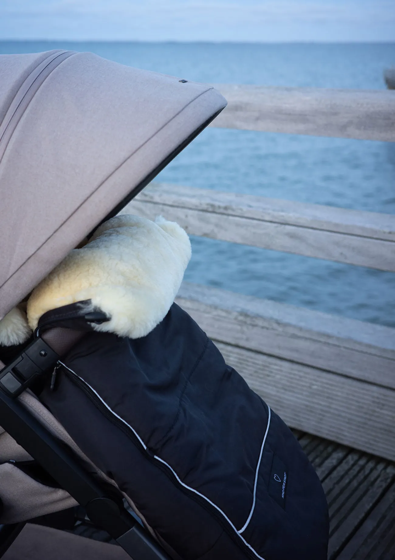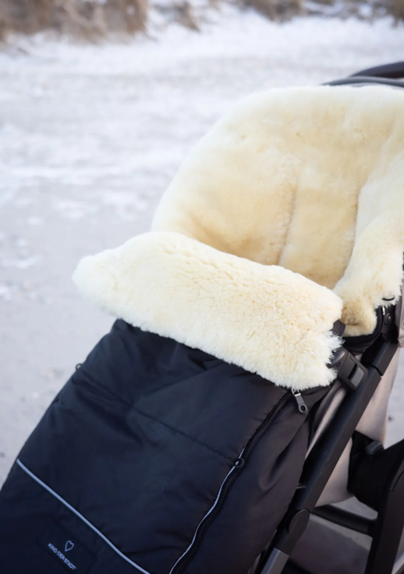 Mit unserem Lammfell-Fußsack bieten wir euch die perfekte Kombination aus Komfort, Funktionalität und hochwertiger Verarbeitung – von uns für euren wertvollsten Schatz!