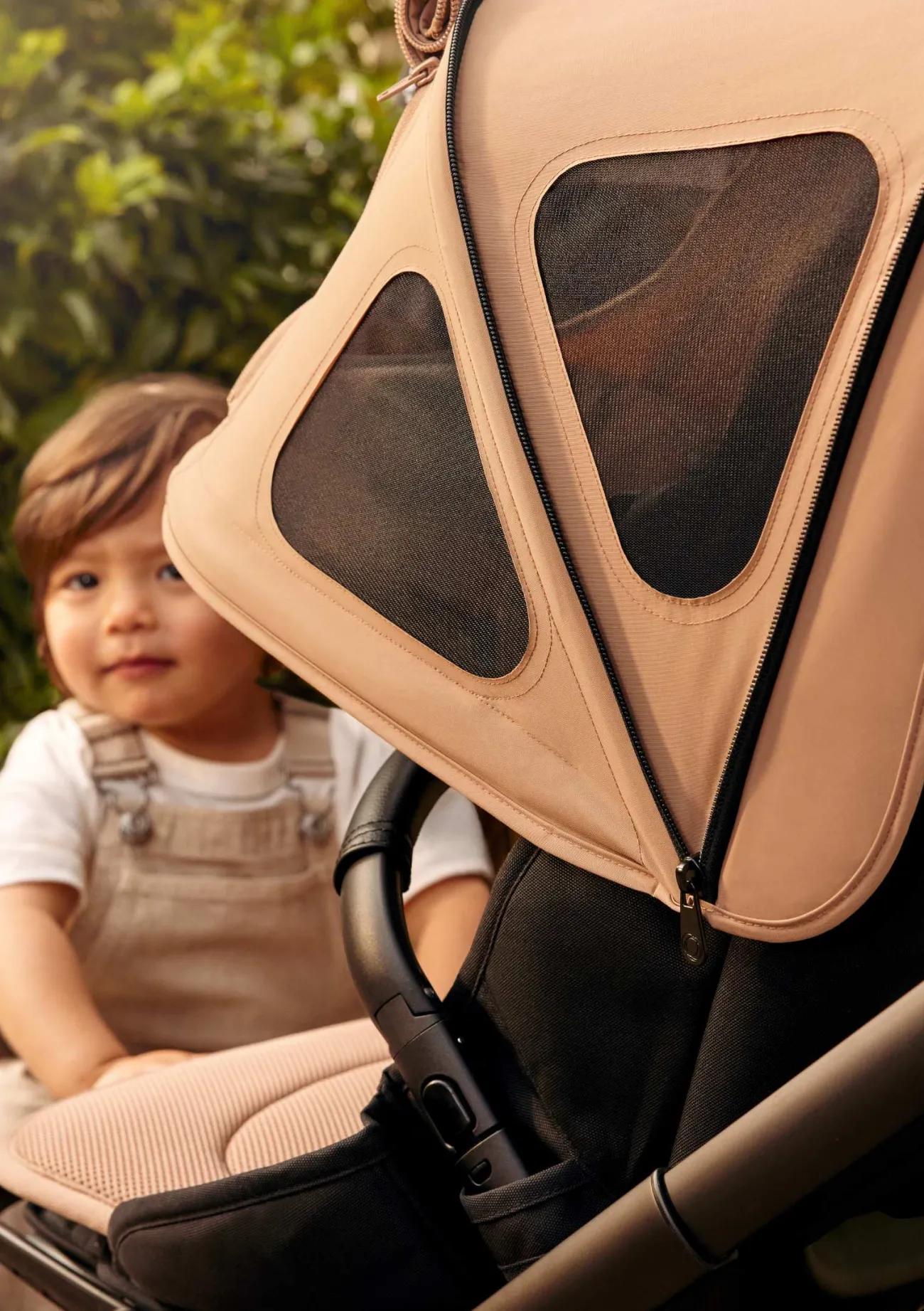 Das Sonnendach von BUGABOO schützt nicht nur vor Sonne, sondern lässt dank seiner großzügigen Lüftungsfenster eine angenehme Luftzirkulation zu. Perfekt für den Sommer!