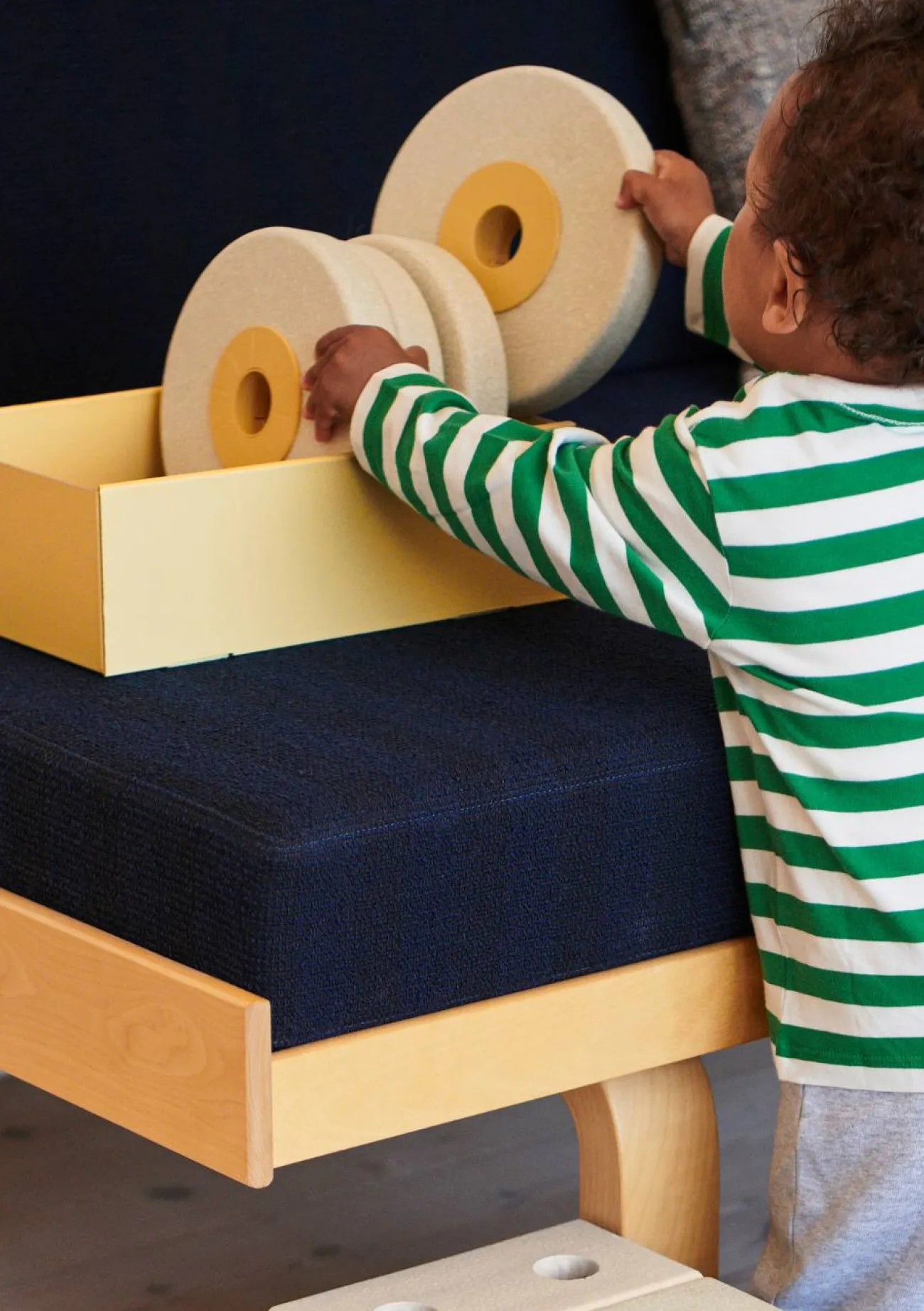 Insgesamt 22 Elemente, darunter Schaumstoffbausteine, Verbindungsstifte und Schaumstoffräder hält das dänische Label in diesem Bausatz-Set für den Babywalker für euch bereit. Wie alle Bauteile der Marke, sind auch sie aus umweltfreundlichen, recycelbaren Materialien gefertigt. Die modulare Lauflernhilfe lässt sich einfach zusammenbauen und schon kann dein Liebling die ersten Gehversuche unternehmen – so macht Laufenlernen Spaß! Und danach? Baut ihr den Lauflernwagen im Handumdrehen zur Schubkarre oder zum praktischen Tritthocker um oder ergänzt die Teile um weiteres Modu Bauspielzeug für grenzenlose Möglichkeiten!