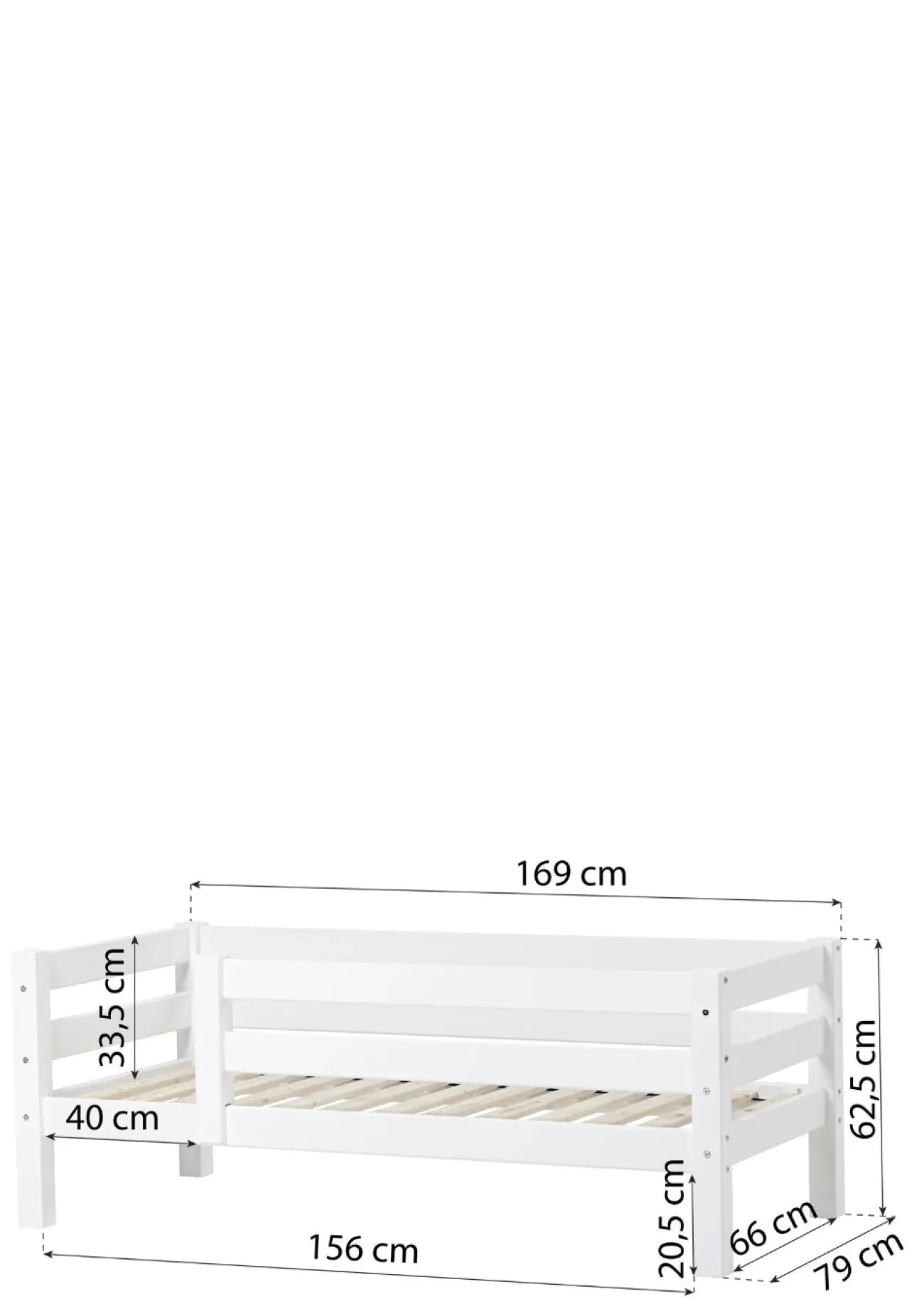 - je nach Alter des Kindes/Sicherheitsbedürfnis optional mit einem Bettschutzgitter in verschiedenen Größen erhältlich: ohne Rausfallschutz, mit kleinem oder großem Rausfallschutz (bitte geeignete Variante auswählen!)