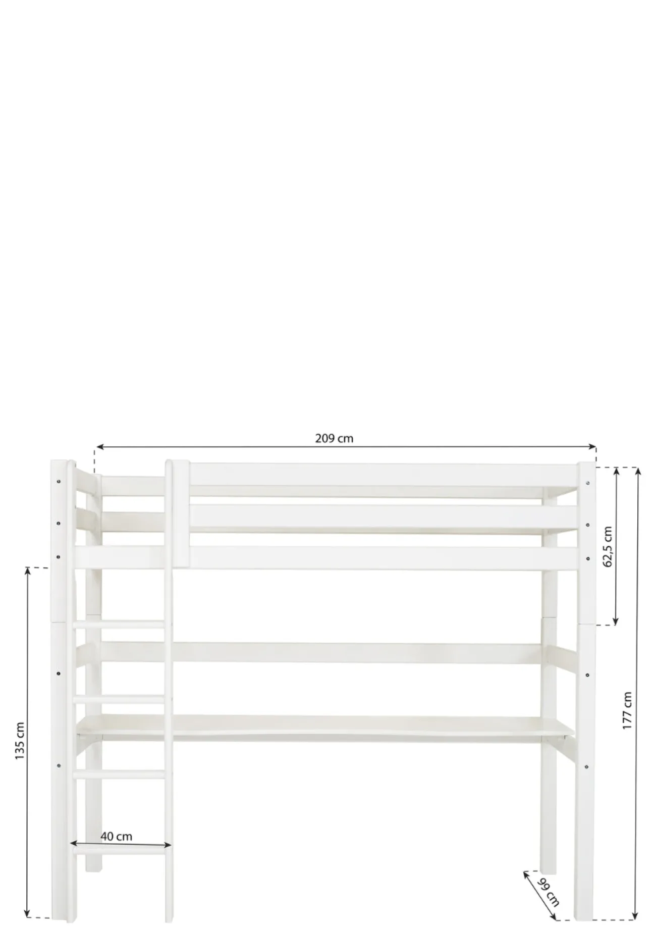 - Bettgröße, gerade Leiter: L 209 x H 177 x T 104cm