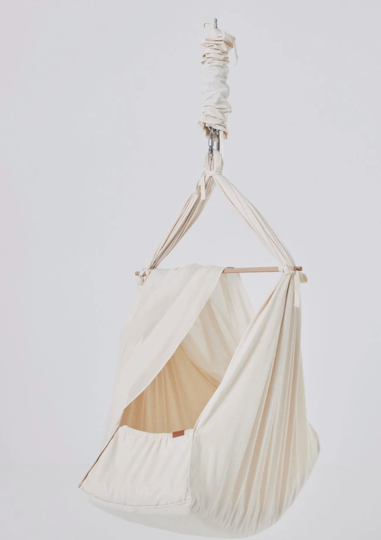 - Premium-Federwiege aus ökologischer Baumwolle inkl. Querstange, Feder mit Sicherungsgurt, Stoffbeutel, Woll-Matratze mit abnehmbarem Bezug, Spannbettlaken mit Stickerei, Karabiner mit Schraubverschluss und Gummiisolierung
