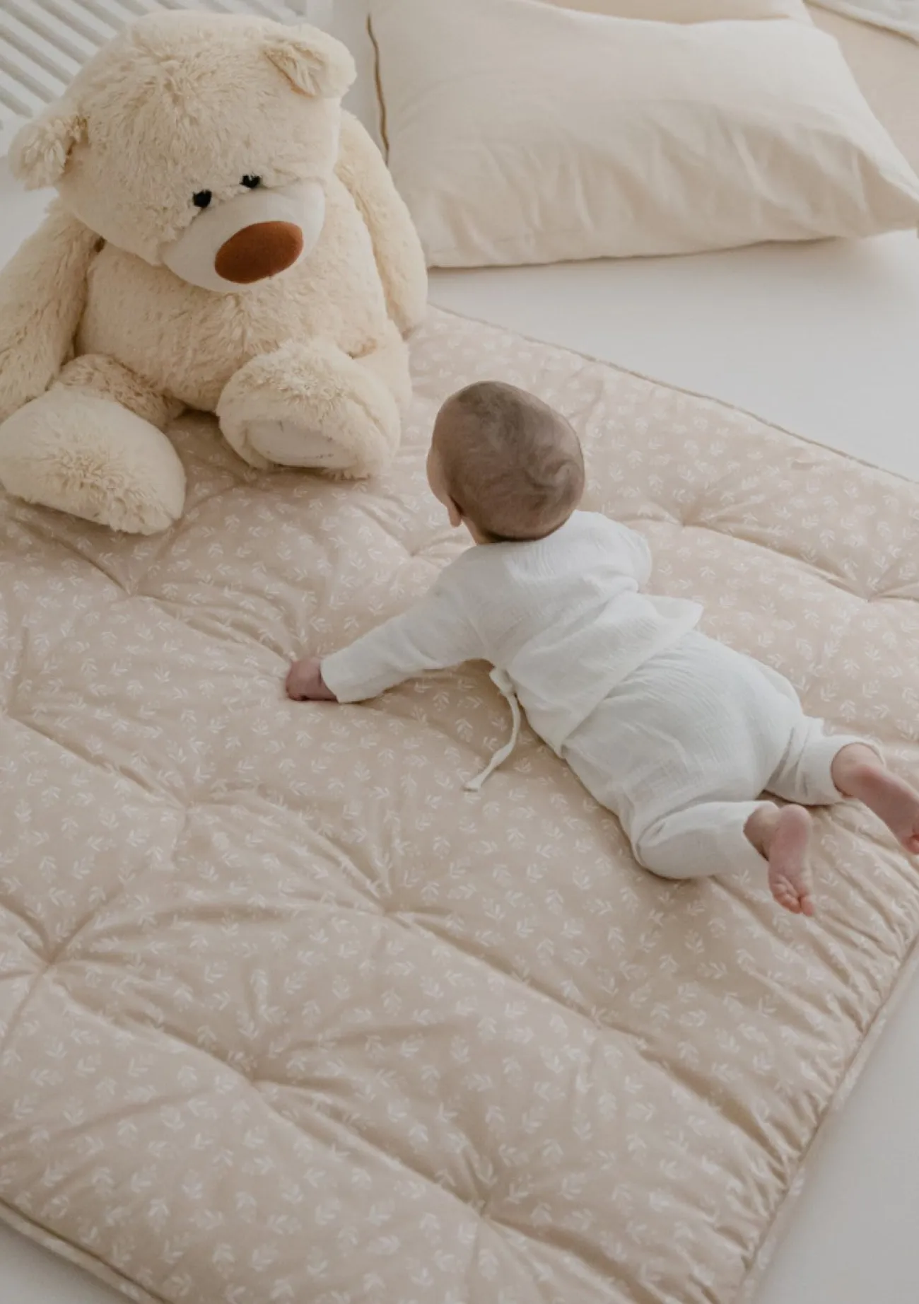 Diese wunderschöne Krabbeldecke bietet deinem Baby eine weiche und geschützte Spielfläche. Dank ihrer extra dicken Polsterung sorgt sie für hohen Komfort und hält die Bodenkälte zuverlässig fern – ideal zum Krabbeln, Spielen und Entdecken.