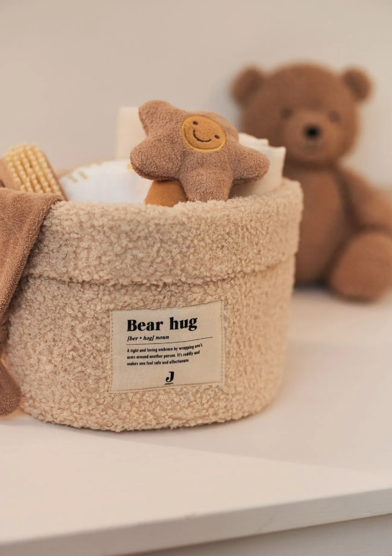 Dekorativ und praktisch ist dieses hübsche Pflegekörbchen von JOLLEIN. Stilvoll beherbergt es verschiedene Pflegeutensilien, die am Wickeltisch benötigt werden und macht dabei sogar optisch was her. Das Obermaterial aus weichem Teddyplüsch sorgt für eine angenehme Haptik und erzeugt einen besonderen Look. Ordnung kann so einfach sein!