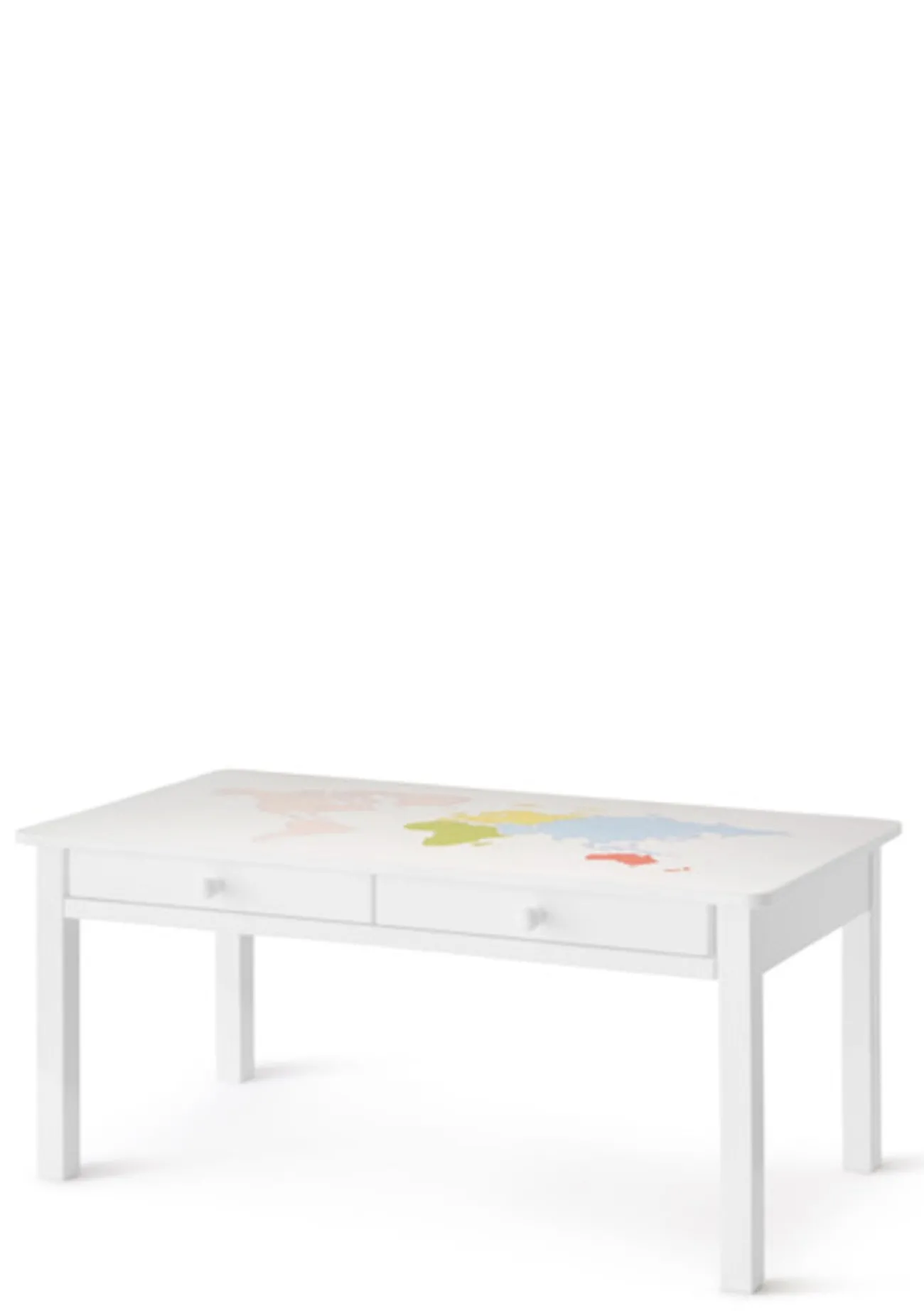 - Handbemalung Option 2: Weltkarte in bunt, blau oder rosa auf der Tischfläche