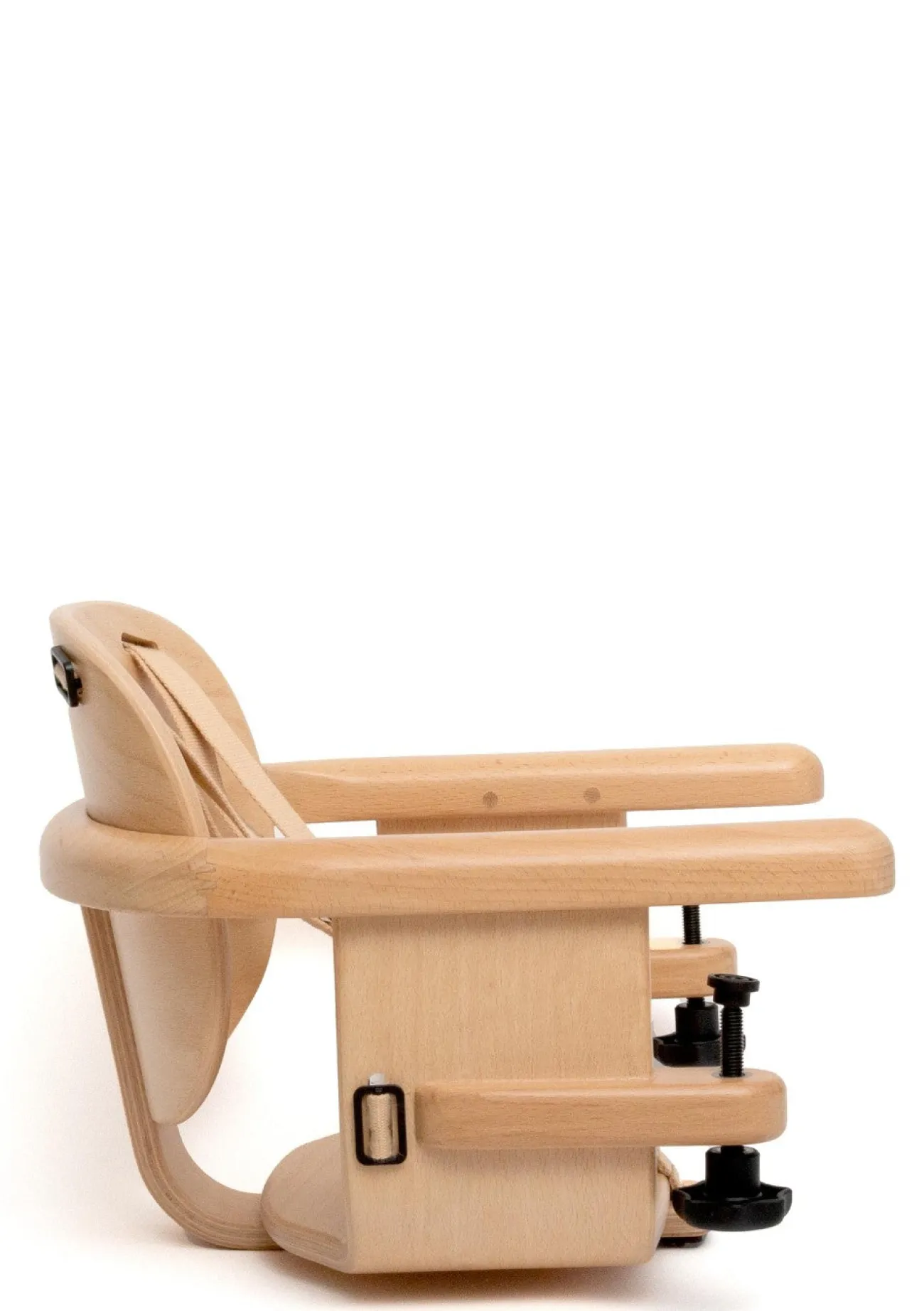 In diesem clever designten Sitz nimmt dein Liebling am Familientisch Platz. Das raffinierte Möbelstück ist die ideale Lösung für Familien, die stilvolles Design und funktionale Flexibilität vereinen möchten. Mit seinem klaren, modernen Look aus Buchenholz passt er sich harmonisch an jedes Wohnambiente an – ob in der Küche, im Esszimmer oder auf Reisen. Der platzsparende Tischsitz lässt sich in Sekundenschnelle am Esstisch befestigen und ist für Kinder ab etwa 6 Monaten bis zu einem Gewicht von maximal 15 kg geeignet. Er bietet deinem Spross einen sicheren und bequemen Platz direkt auf Augenhöhe mit der Familie – für gemeinsame Mahlzeiten ganz nah am Geschehen. Das durchdachte Befestigungssystem sorgt für einen festen Halt an den meisten Tischplatten (2-5,2 cm dick). Und weil Design und Alltag bei Charlie Crane Hand in Hand gehen, überzeugt der Tischsitz nicht nur optisch: Er ist schnell montiert, lässt sich einfach wieder abnehmen und macht so auch spontane Familienessen bei Freunden oder Großeltern ganz unkompliziert möglich.