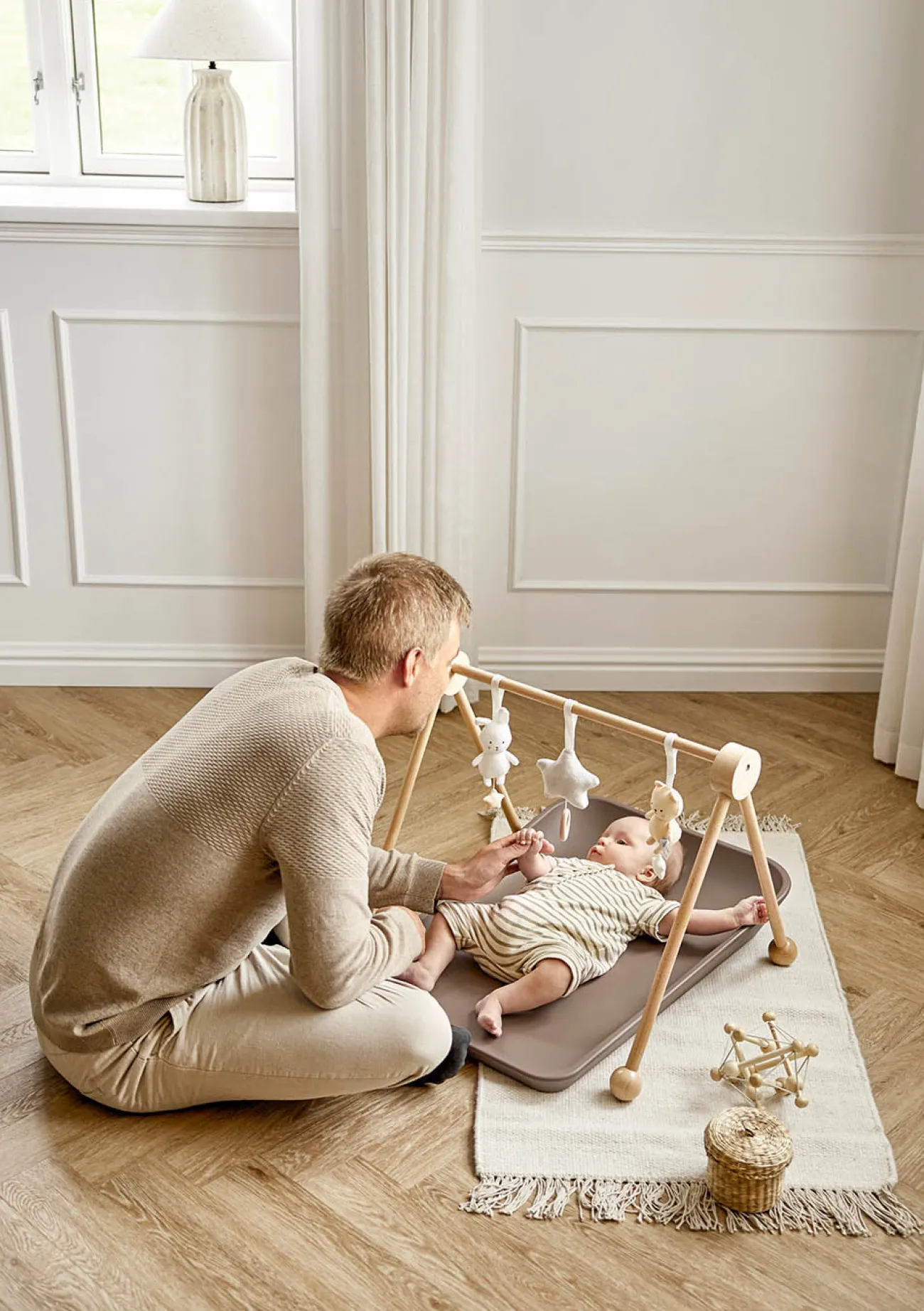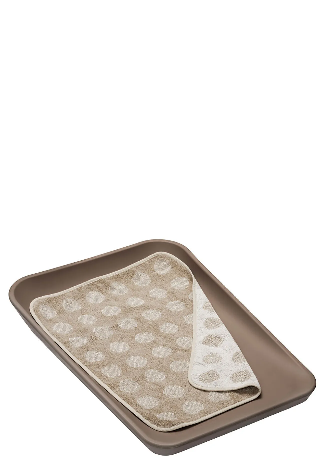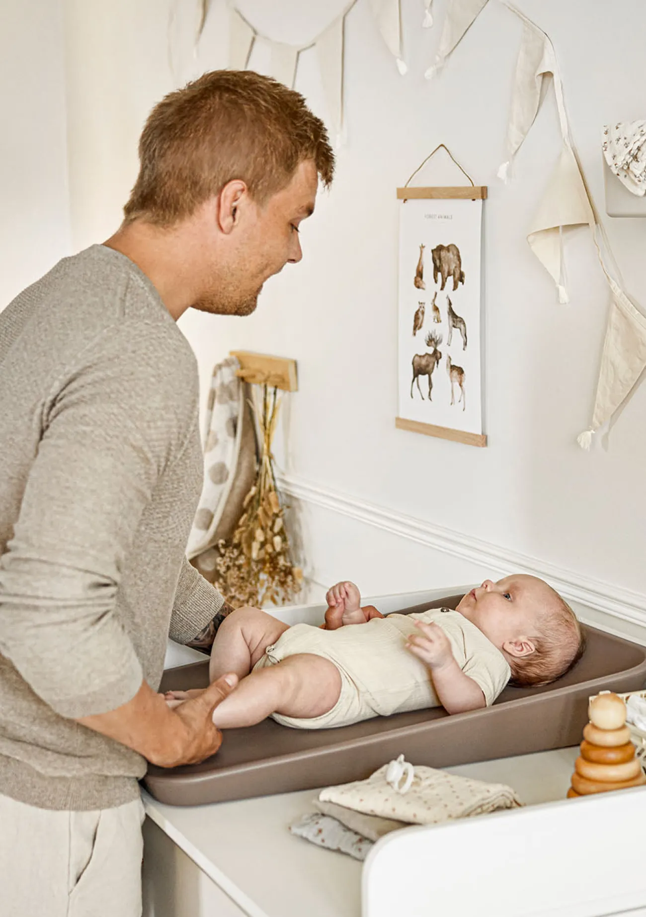 - feste Unterlage aus Holz und kleine Gummifüße für Stabilität und sicheren Sitz auf Wickeltisch oder anderen glatten Flächen